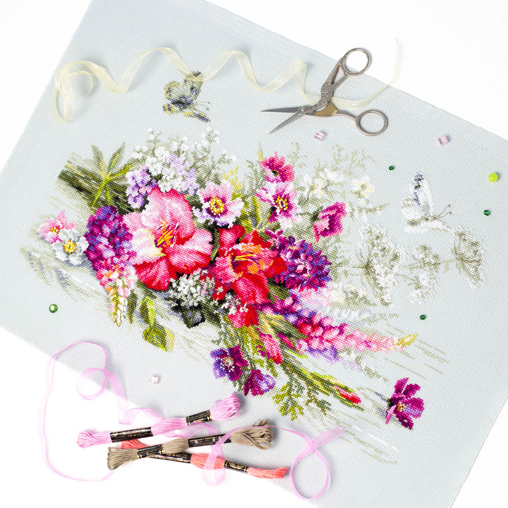 | Техника | Назад иголку (бэкстич), полукрест, счетный крест, французские узелки |