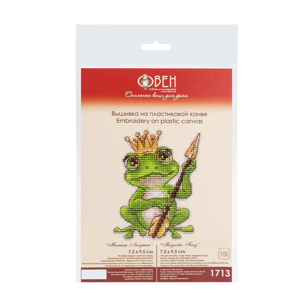 Набор для вышивания крестиком Лягушка от бренда Овен содержит все необходимое для создания очаровательного магнита, который можно повесить на холодильник или доску объявлений.