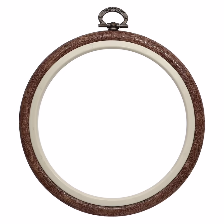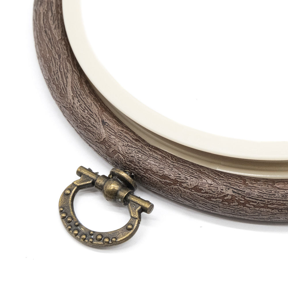 Внутренний обод изготовлен из пластика, внешняя часть – из каучука. Рисунок внешней части пялет имитирует дерево.