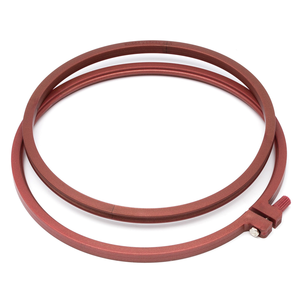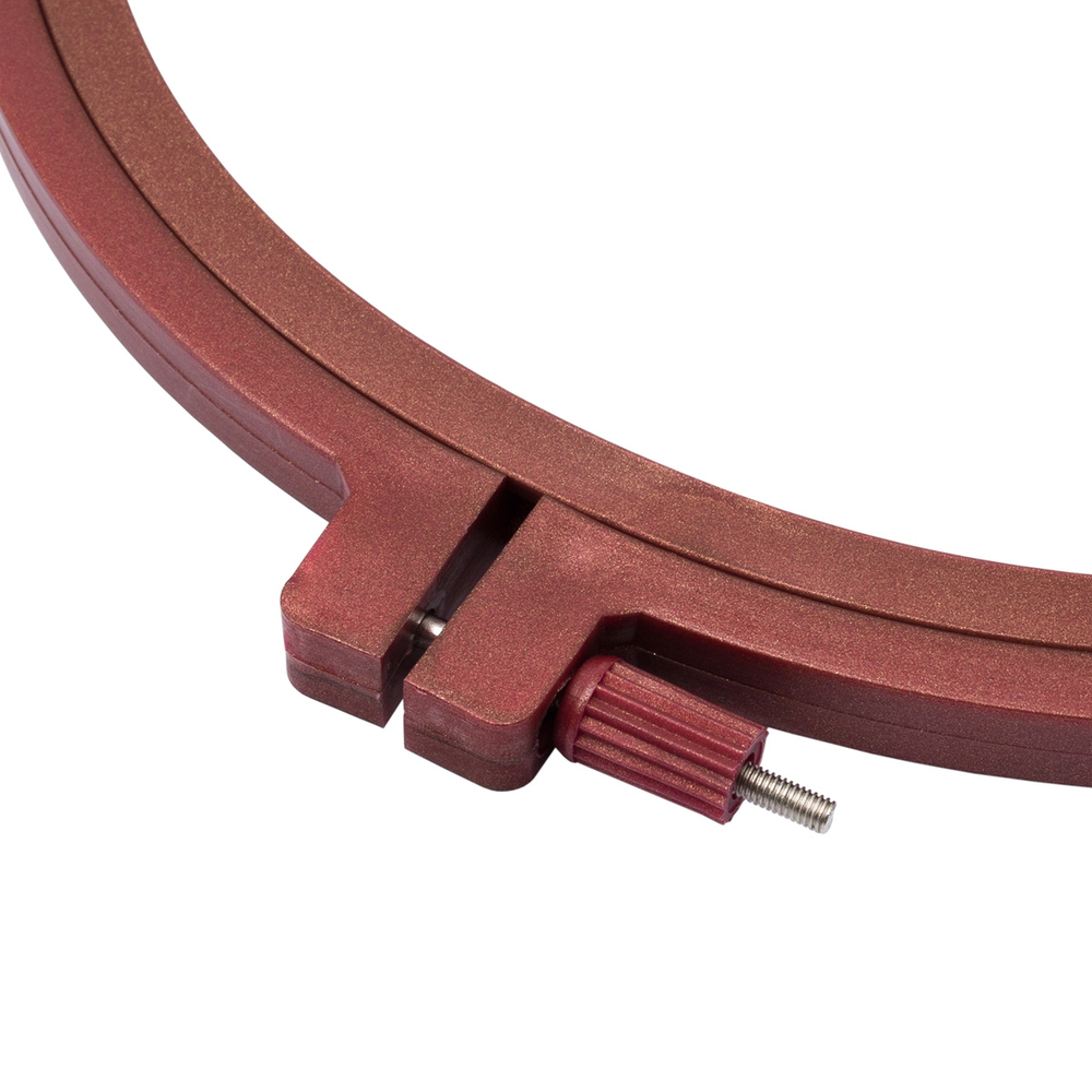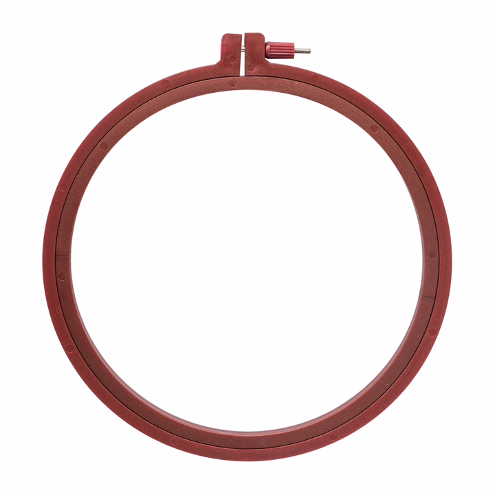 Пяльцы, изготовленные из прочного пластика, являются незаменимым инструментом для создания вышивки. Их основное назначение – держать материал в натянутом состоянии. Круглые пяльцы обычно используют в том случае, если размер вышивки небольшой. Изделие оснащено металлическим винтом, с помощью которого можно регулировать натяжение ткани в зависимости от ее плотности.