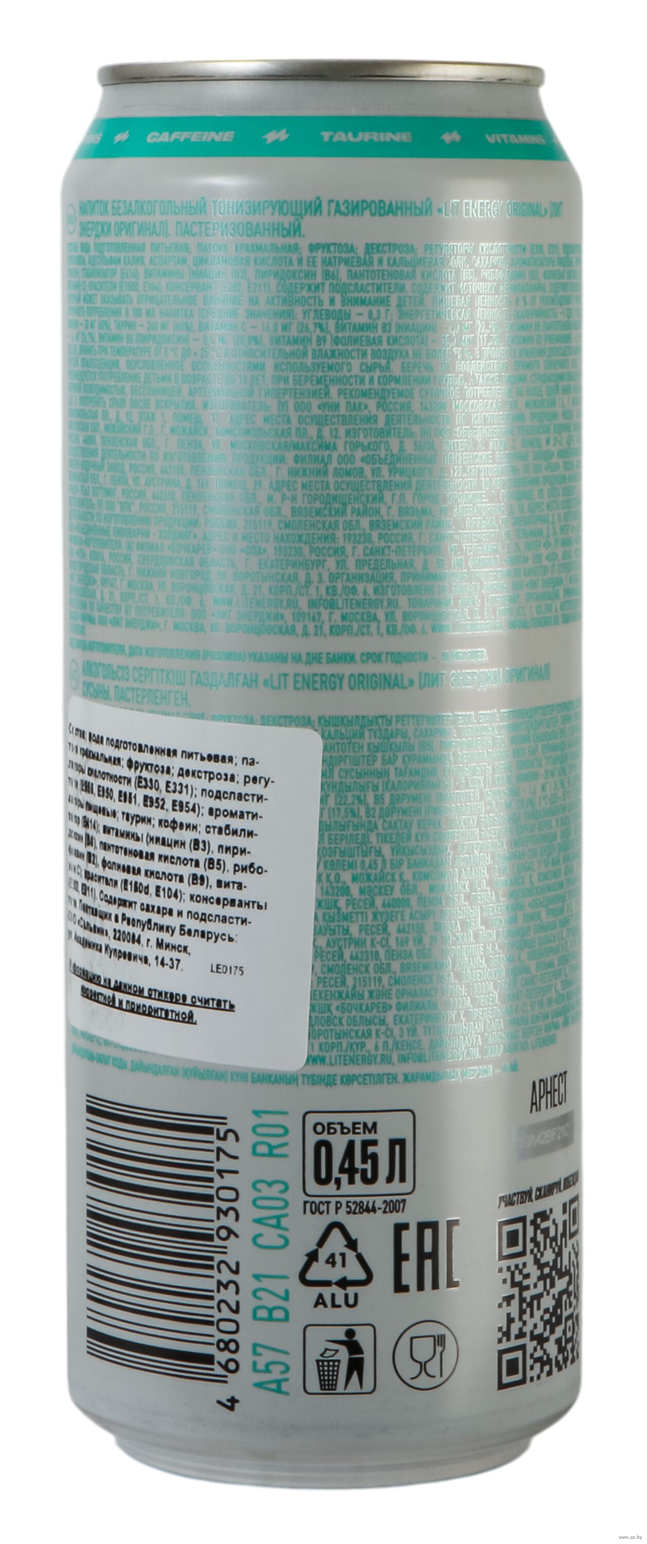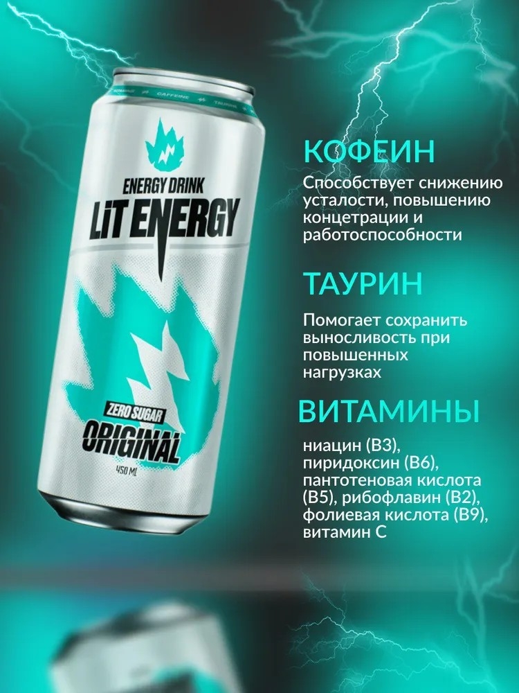 Энергетический напиток в банке Lit Energy, также известный как энергетик от Литвина сочетает в себе витамины, а именно Витамин B3, B5, B6, Витамин C. Помимо прочего энергетик содержит отличный предтренировочный комплекс. Напиток богат кофеином и таурином.