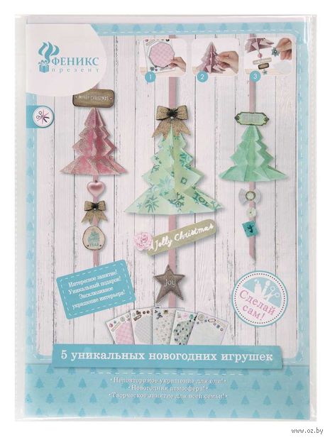 В состав новогоднего набора для творчества входит все необходимое для создания игрушек-поделок, а недостающие принадлежности (например, клей) легко найдутся в любом доме. Для работы с набором не нужны даже ножницы, так как все детали уже заранее вырублены на листах.