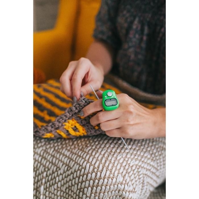Не запутаться в готовых рядах поможет электронный счётчик. Он надевается палец, и при окончании последовательности вам нужно просто нажать на большую кнопку.