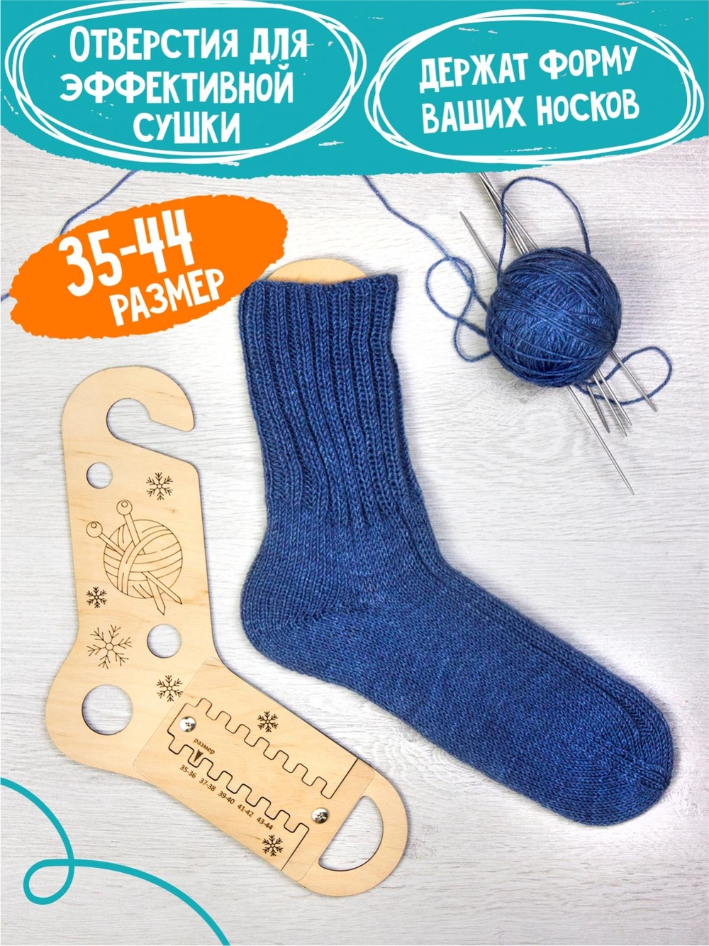 2 деревянных блокатора с пластиковыми фиксаторами для вязания носков 35-44 размеров.