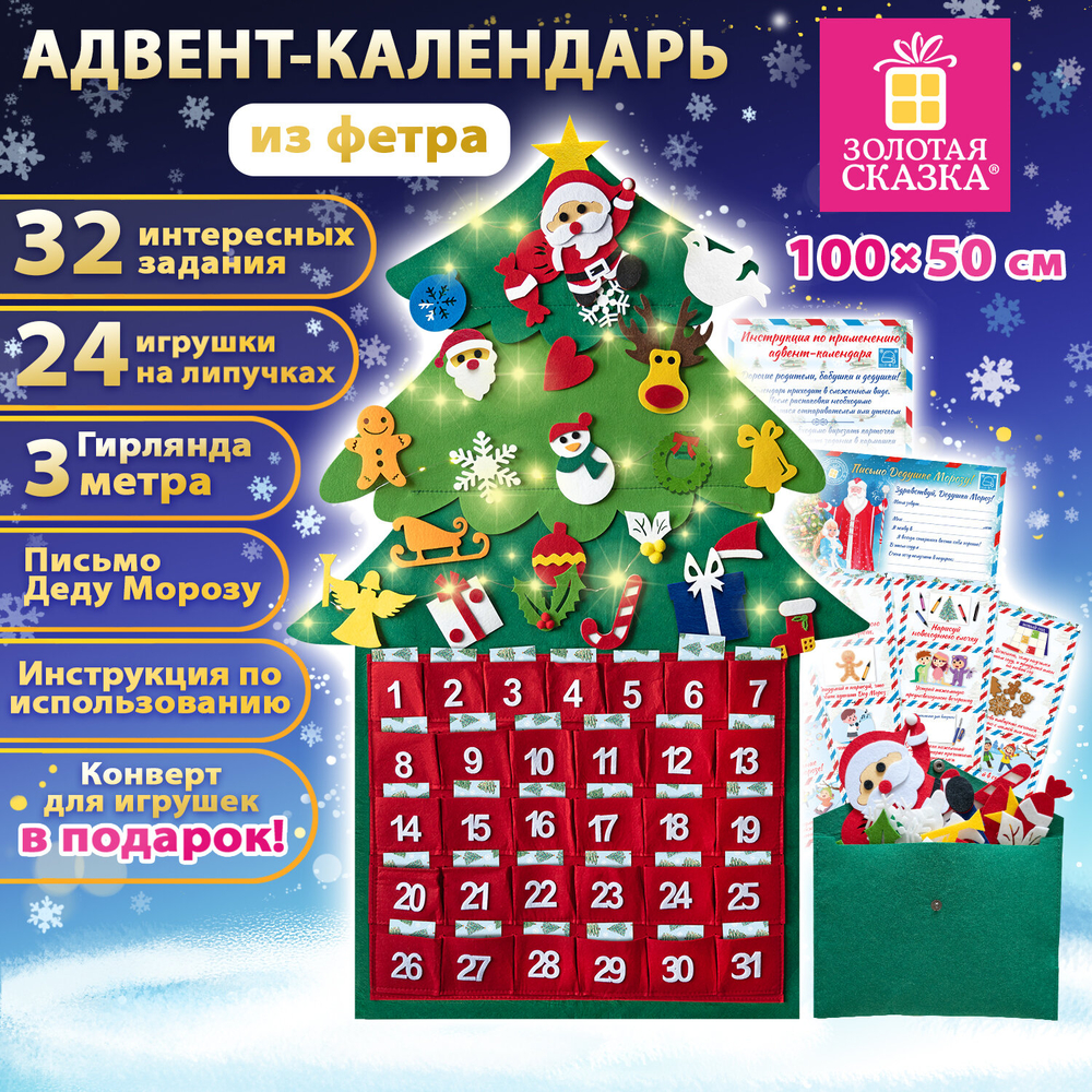 Адвент-календарь из фетра "Золотая сказка" – это оригинальное новогоднее украшение интерьера и увлекательная развивающая игра для детей по методике Монтессори.