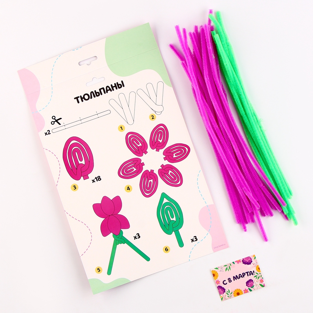 Поделка к празднику – отличный повод провести время с ребёнком и создать замечательную поделку. Детям нравится мастерить из самых невероятных материалов. Оригинальный набор для создания букета из пушистой проволоки по-настоящему увлечёт ребёнка и станет удачным подарком для талантливого малыша!