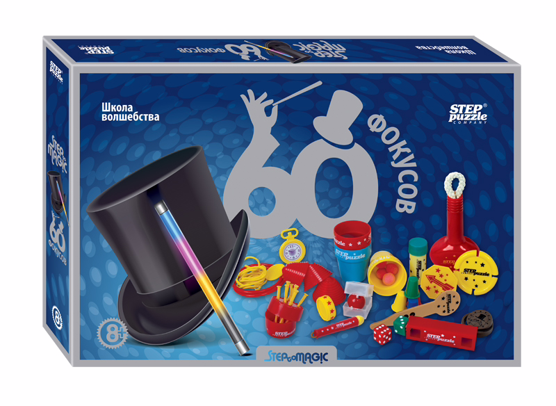В наборе юные мастера иллюзий найдут все необходимые принадлежности для того, чтобы научиться показывать 60 разнообразных фокусов.