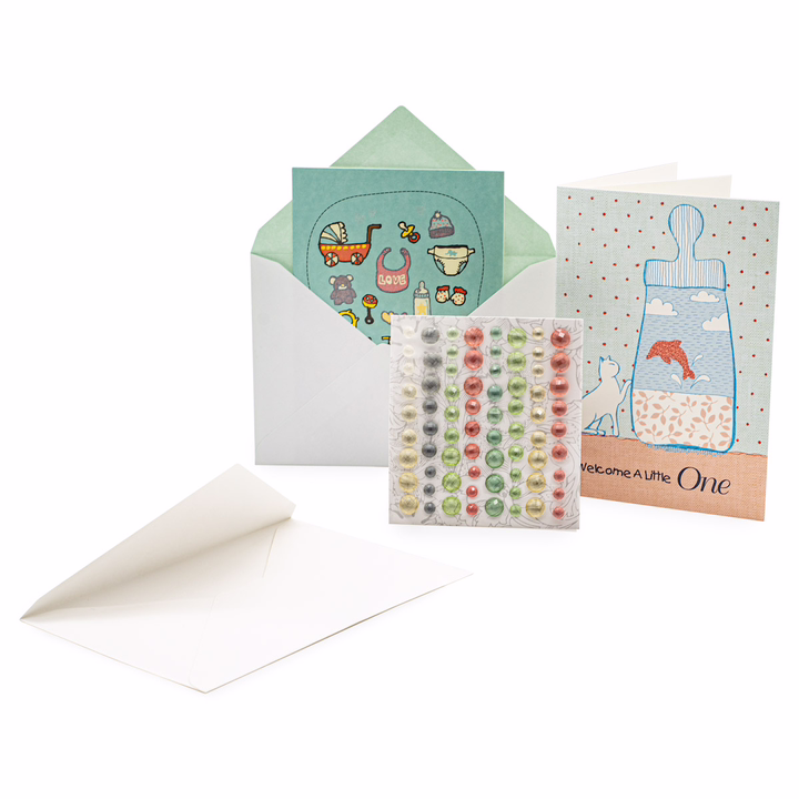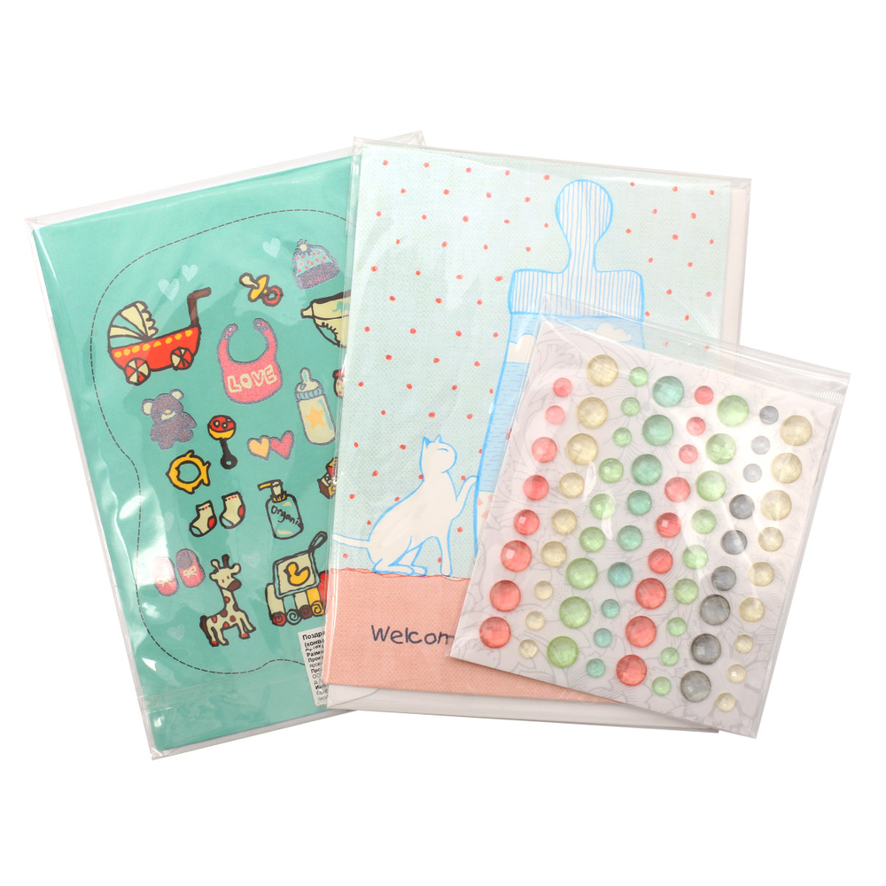 В наборе вы найдете качественные наклейки и объемные акриловые элементы – все детали подобраны в тон. Украсьте ими обложку открытки на свой вкус, напишите поздравление и преподнесите открытку вместе с основным подарком.