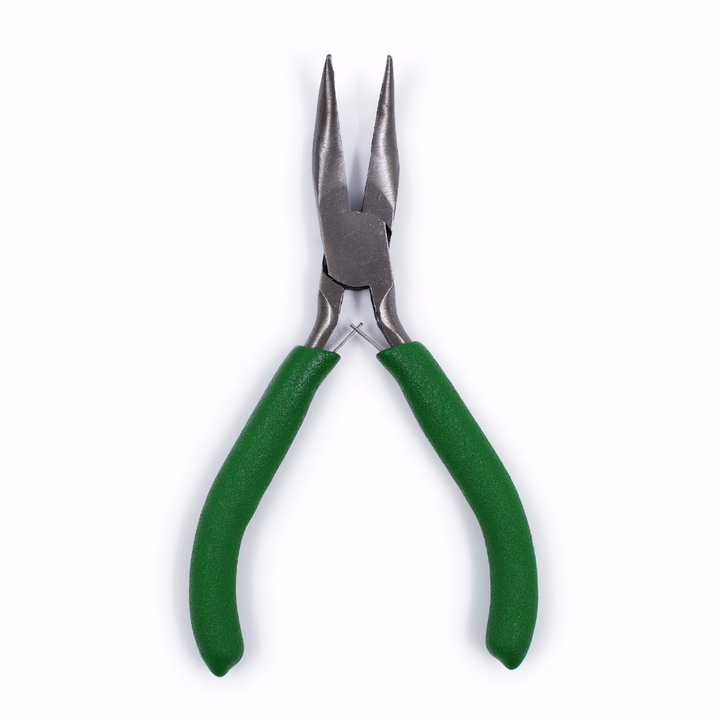 Инструмент с тонким и плоским изогнутым носиком. Используется, чтобы придавать ювелирной проволоке желаемую форму, удобно фиксировать мелкие детали, размыкать соединительные колечки и звенья цепочек.