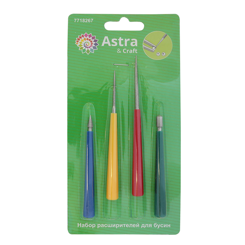 Инструменты от Astra&Craft используются для создания украшений. Имеют металлические наконечники с алмазным напылением, которые позволяют увеличить сквозное отверстие бусины, сгладить острые углы.