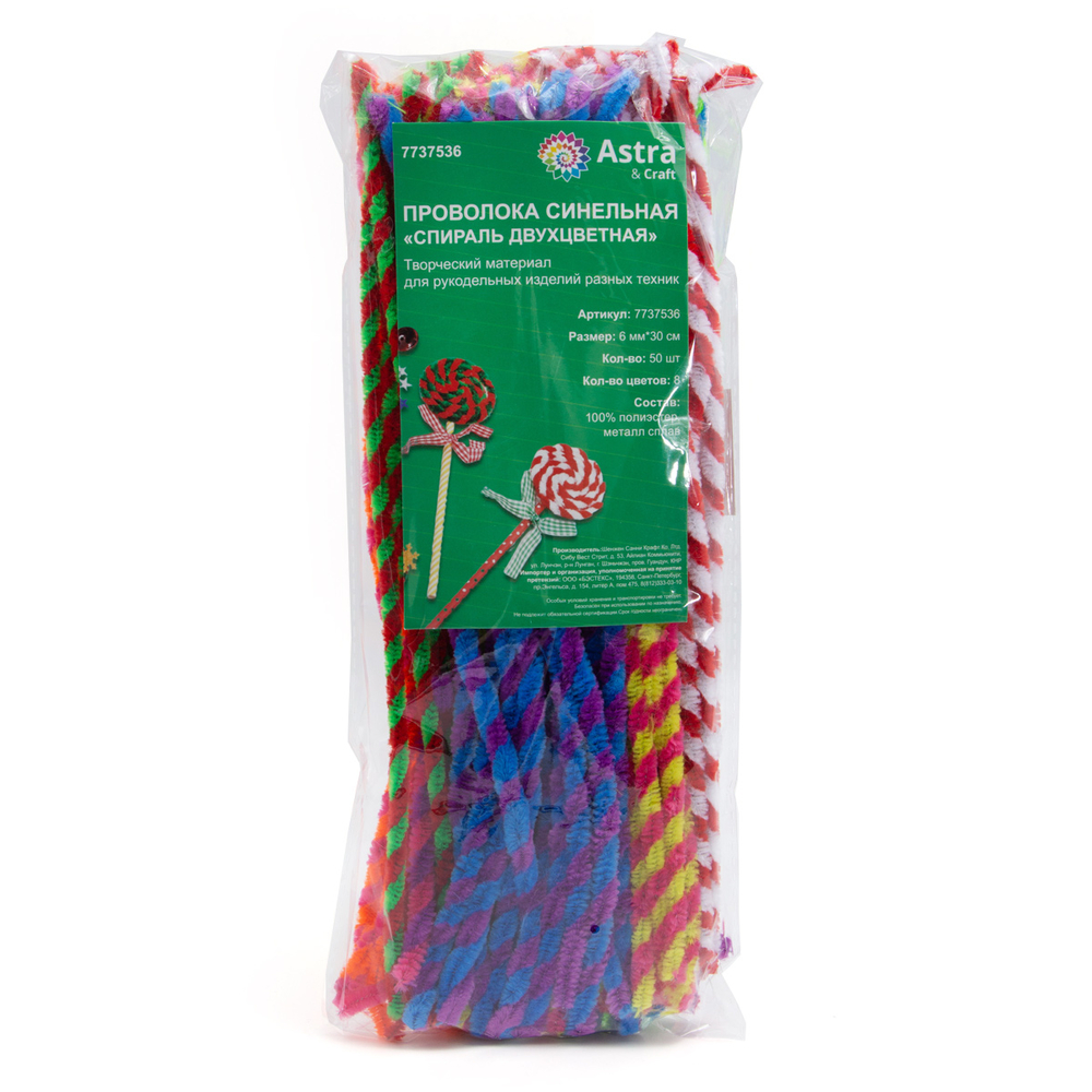 Проволока "пушистой" двухцветной оплеткой из полиэстера (синельная проволока) от Astra&Craft – идеальный материал для детского творчества.