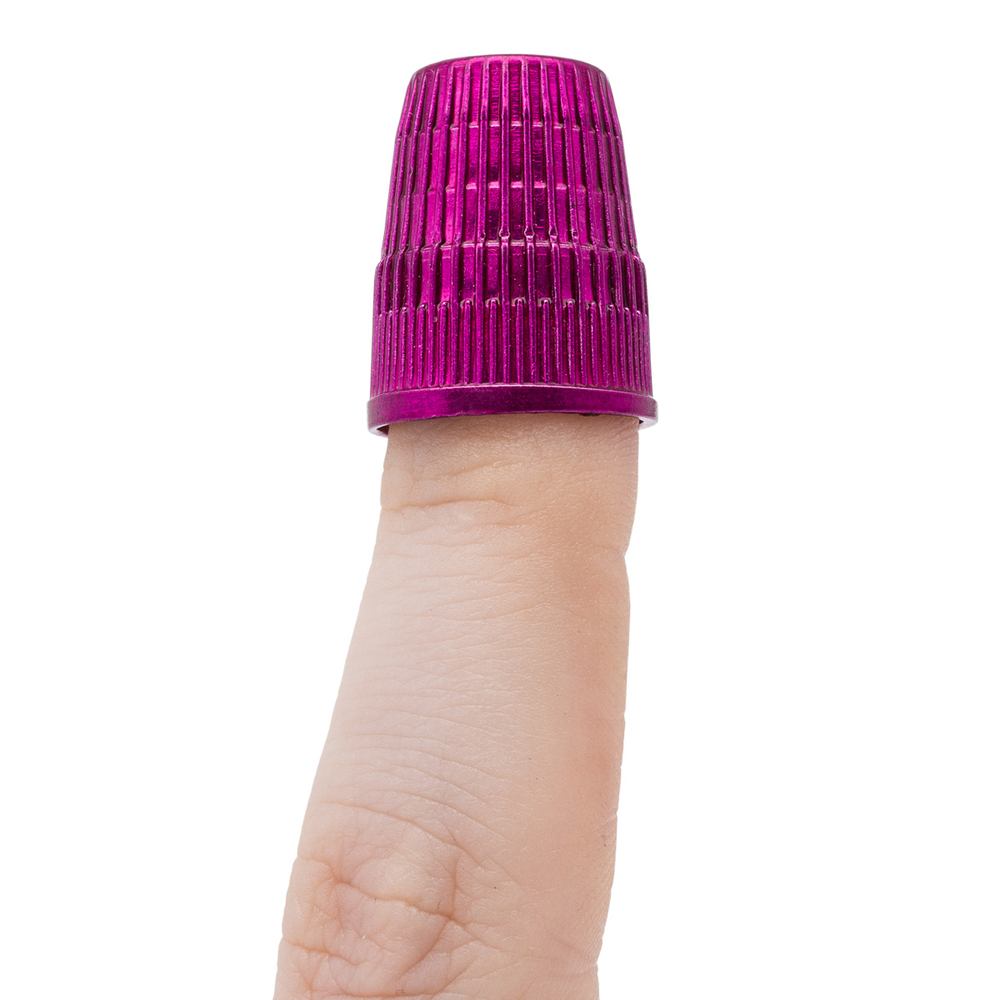 Выбор размера зависит от размера пальца, наперсток не должен соскальзывать, но и не должно быть сильного давления.