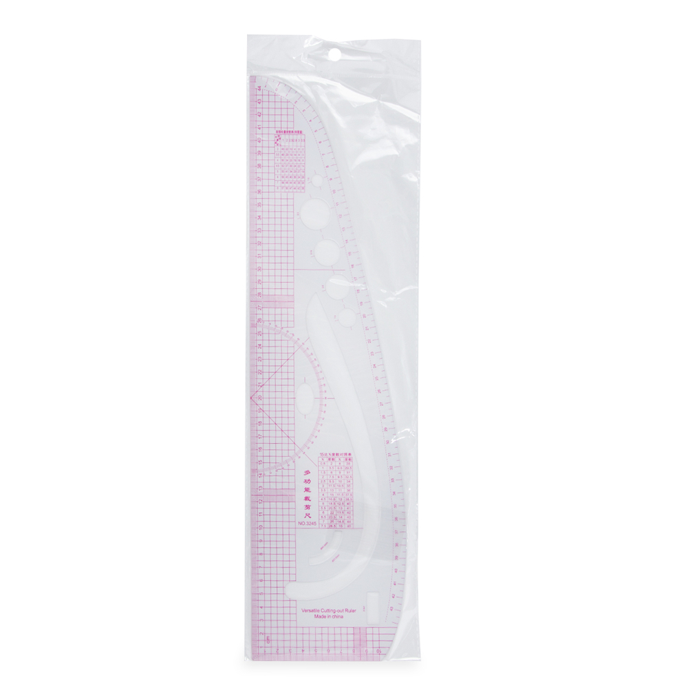 Портновское лекало формы "дуга" с измерительной шкалой используется при раскрое и построении выкроек. Изготовлено из прозрачного пластика, что облегчает работу с выкройкой. Разметка контрастного цвета выполнена в сантиметрах и обеспечивает точный раскрой.