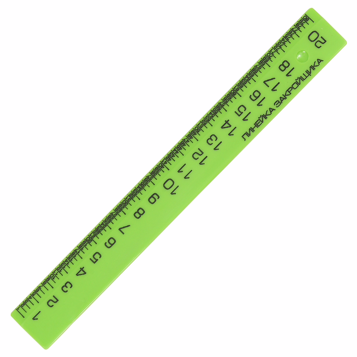 Линейка закройщика длиной 20 см имеет специальную шкалу, где каждый сантиметр поделен на 4 части. Такая шкала позволяет строить масштабируемые выкройки. Линейка пригодится тем, кто занимается разработкой моделей одежды, шитьем и ремонтом, а также рукоделием.