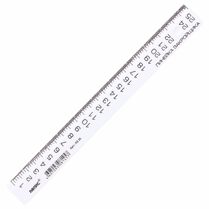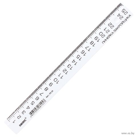 Линейка закройщика длиной 25 см имеет специальную шкалу, где каждый сантиметр поделен на 4 части. Такая шкала позволяет строить масштабируемые выкройки. Линейка пригодится тем, кто занимается разработкой моделей одежды, шитьем и ремонтом, а также рукоделием.
