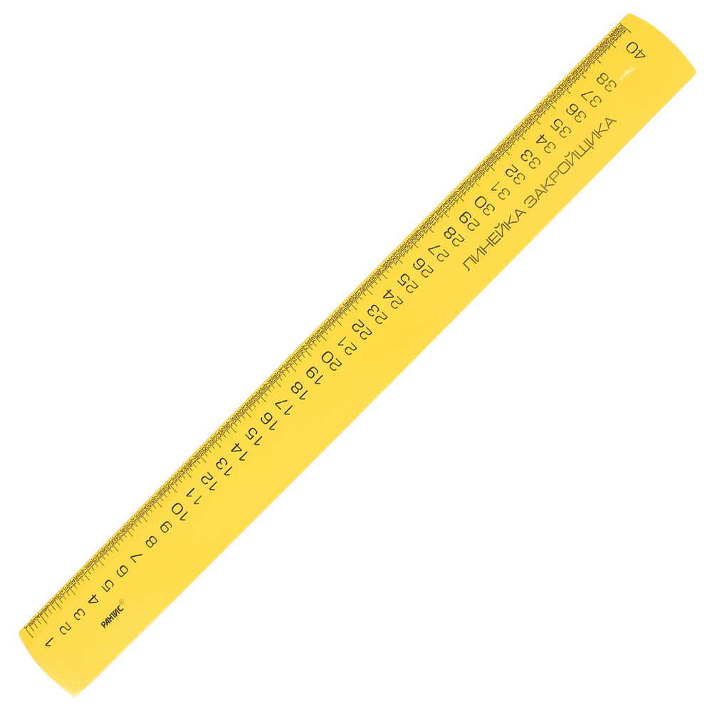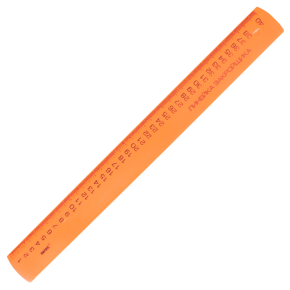 Линейка закройщика длиной 40 см имеет специальную шкалу, где каждый сантиметр поделен на 4 части. Такая шкала позволяет строить масштабируемые выкройки. Линейка пригодится тем, кто занимается разработкой моделей одежды, шитьем и ремонтом, а также рукоделием.