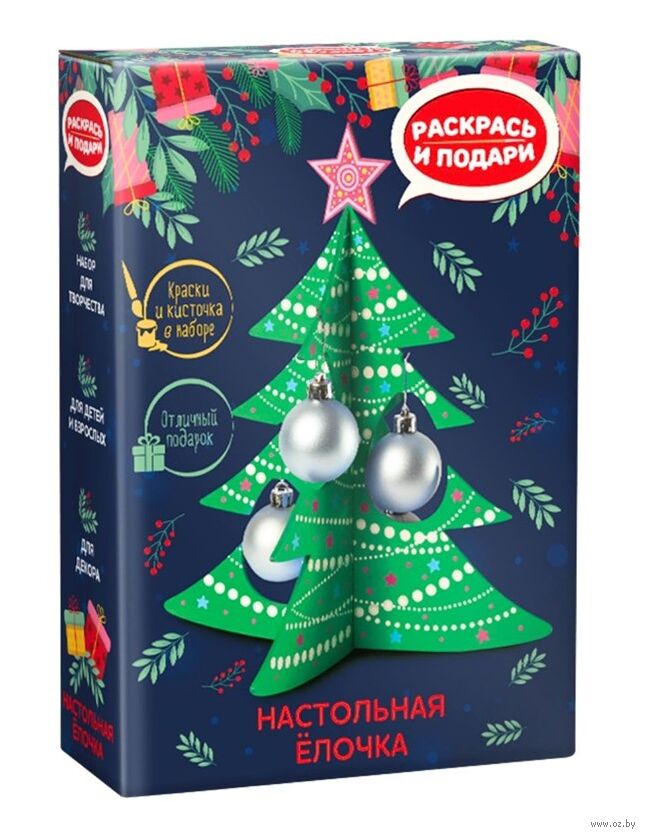 Набор для создания настольной ёлочки – замечательный подарок к новогодним праздникам! В комплекте есть всё необходимое для творчества: краски, кисточка, деревянные заготовки и красивые шарики для украшения. Каждый сможет раскрасить ёлочку по своему вкусу и создать уникальное праздничное украшение своими руками.
