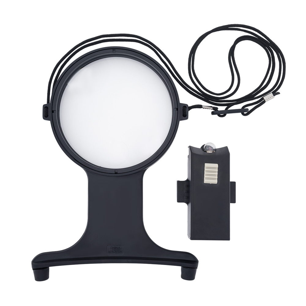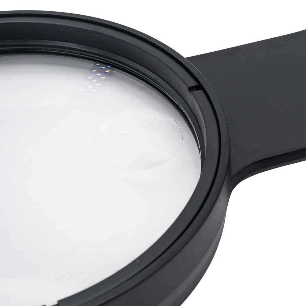 Имеет основную пластиковую линзу диаметром 10 см и кратностью увеличения Х2,5 и дополнительную линзу диаметром 2,5 см и кратностью увеличения Х5.