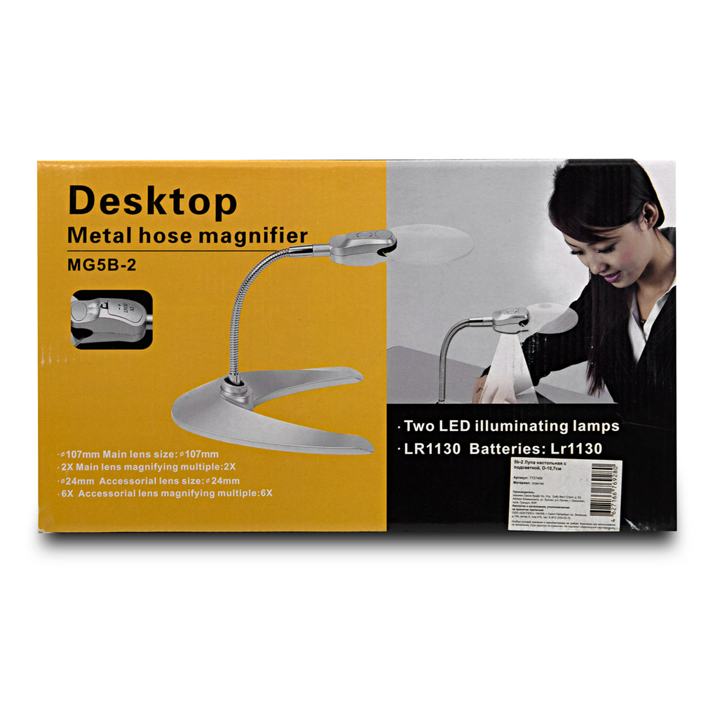 Благодаря встроенной светодиодной подсветке вам будет удобно работать даже при недостаточном внешнем освещении. Устойчивая подставка позволяет размещать лупу на столе, подоконнике и других поверхностях.