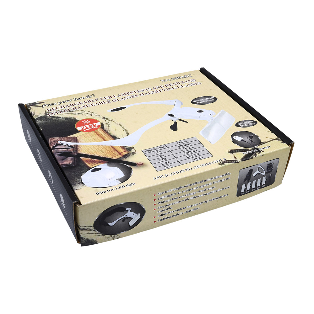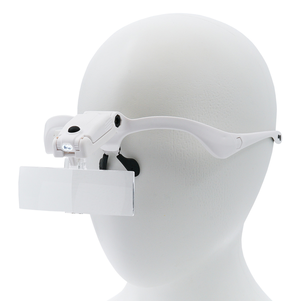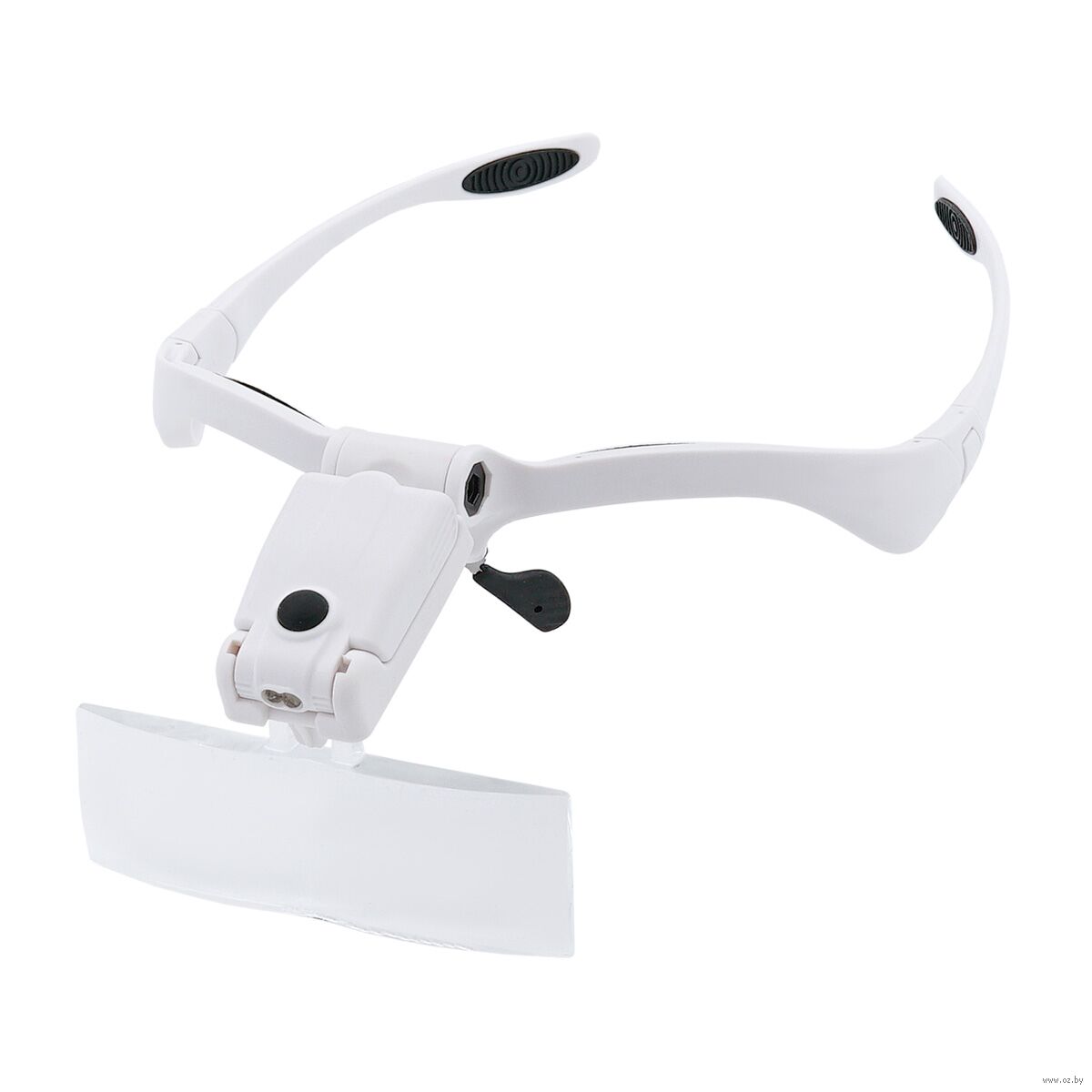 Очки-лупа позволяют свободно перемещаться над рабочей поверхностью, при этом руки остаются свободными. Встроенные светодиодные лампы (2 LED, цвет белый) с регулировкой направления потока обеспечивают яркое освещение рабочего места.