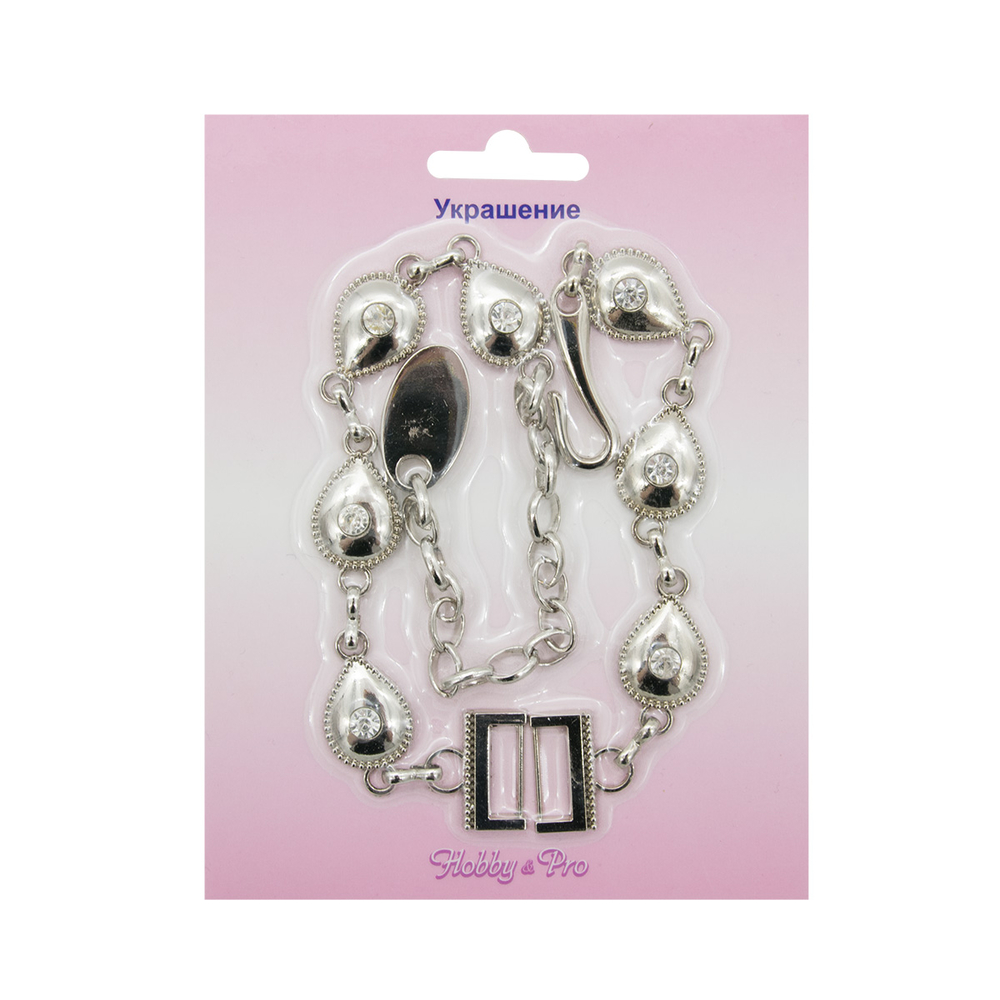 Материал украшения – качественный металл, который не тускнеет со временем. Материал не подвержен коррозии при соблюдении определенных правил эксплуатации, не вызывает раздражения кожи и обеспечивает комфорт при ношении украшения.
