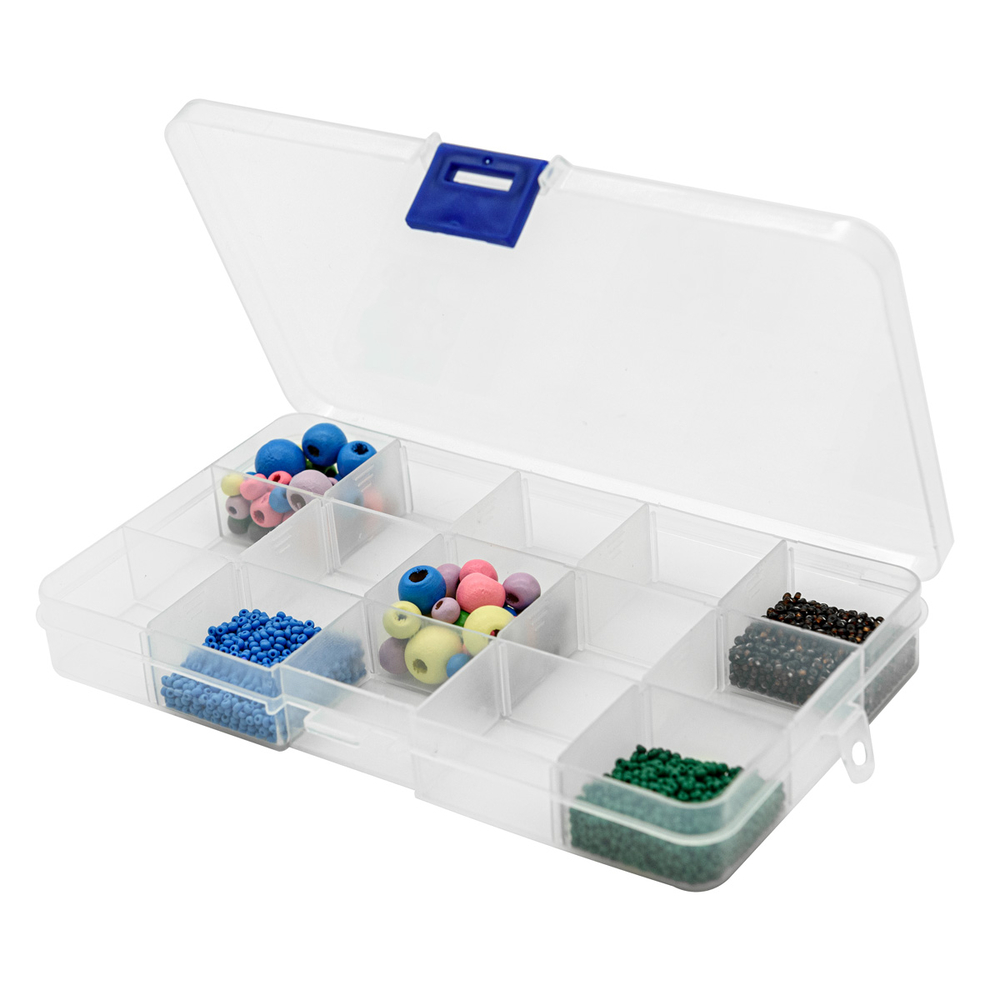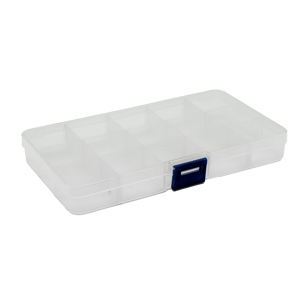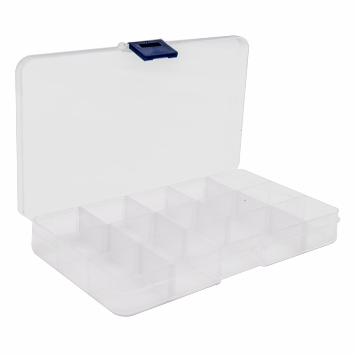Пластиковый контейнер для организованного хранения шпулек для мулине, швейных принадлежностей, различных мелочей. Внутри 3 секции, в комплекте к контейнеру прилагаются 11 съемных перегородок, что позволяет менять количество секций и их размер.