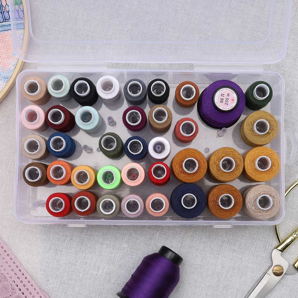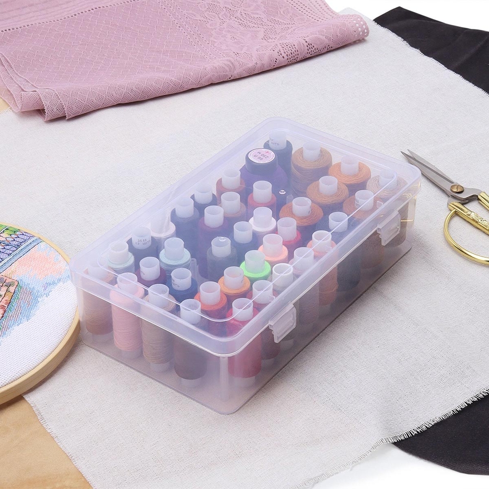 Практичный органайзер для хранения и транспортировки швейных катушек – идеальное решение для организации рабочего пространства. Удобная конструкция контейнера предусматривает продуманную систему размещения из 42 специальных стержней, позволяющих разместить до 42 бобин с нитками. Больше не нужно тратить время на поиски нужного цвета или запутываться в клубках. Каждая бобина будет на своем месте, надежно зафиксирована на стержне.