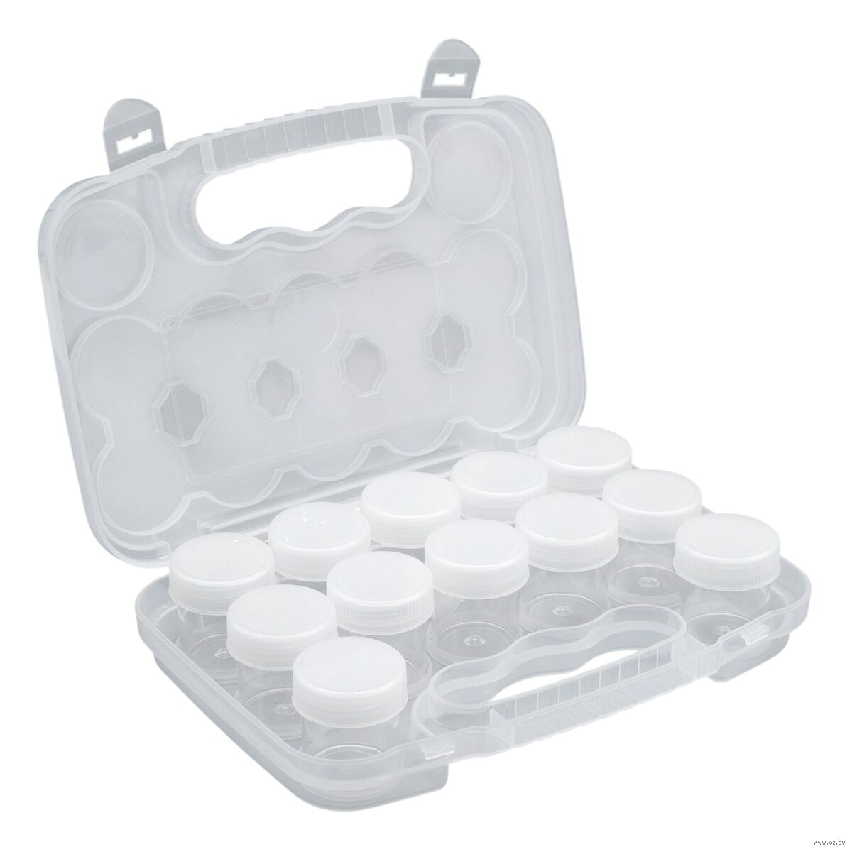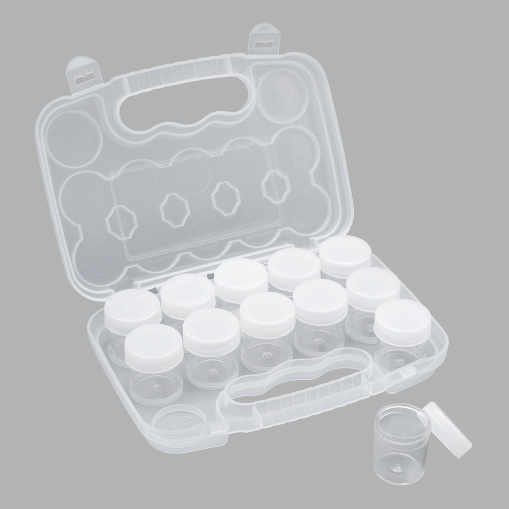 Практичная конструкция включает в себя 12 отдельных баночек с надёжными закручивающимися крышками. Баночки надежно защищают содержимое от пыли, влаги и рассыпания, сохраняя его в идеальном состоянии.