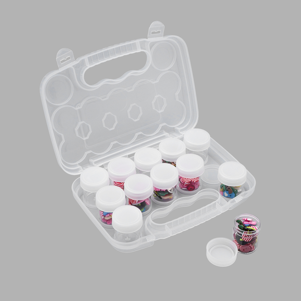 Пластиковый контейнер с крышкой защелкивается на две клипсы, поэтому при транспортировке ничего не выпадет. Органайзер для мелочей легко поместится в сумке или рюкзаке, позволяя всегда иметь необходимые материалы под рукой. Прозрачный корпус облегчает поиск нужной вещи. Качественный пластик устойчив к царапинам и повреждениям.