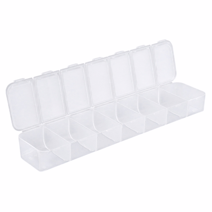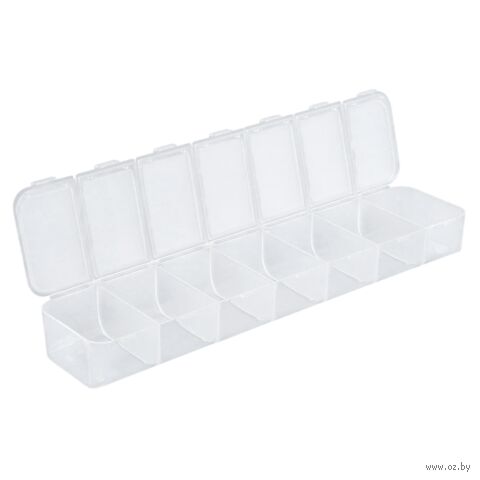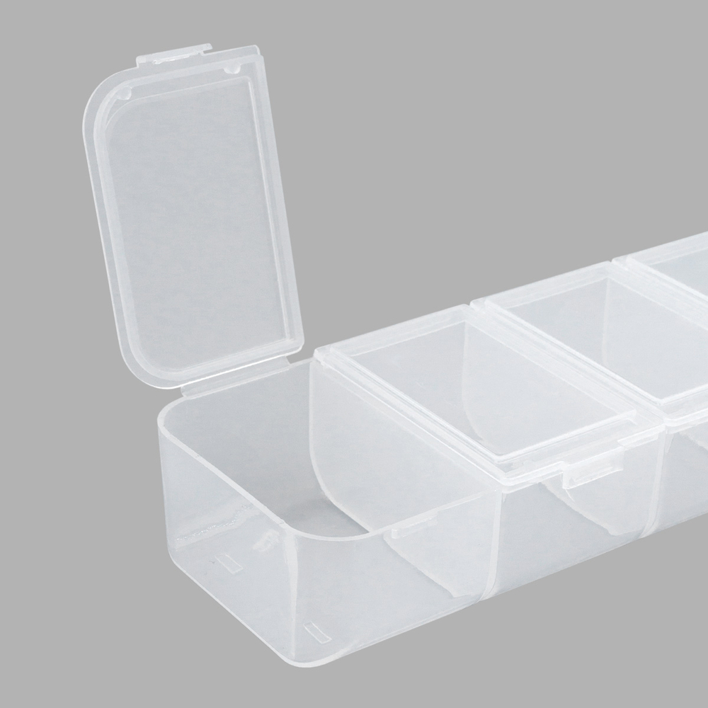 Практичная конструкция включает в себя 7 секций с индивидуально открывающимися крышками. Они надежно защищают содержимое от пыли, влаги и рассыпания, сохраняя его в идеальном состоянии.