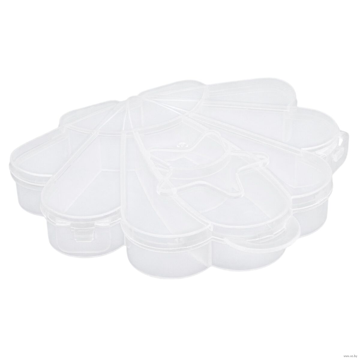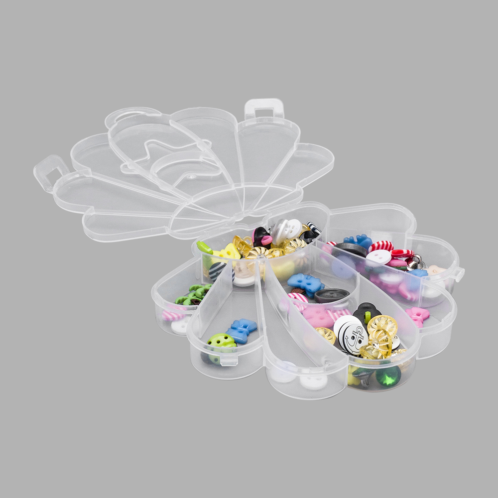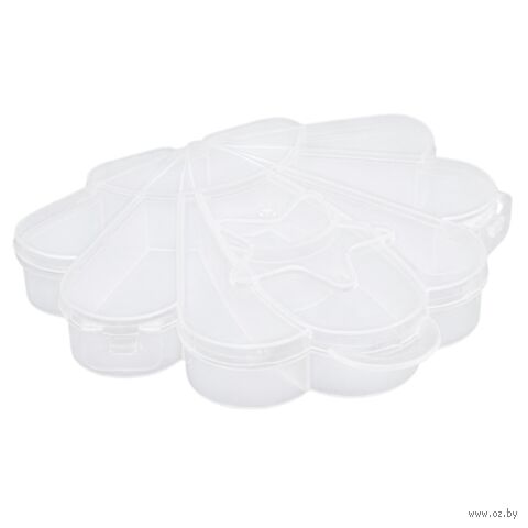 Контейнер для хранения в виде ракушки с 9 секциями и закрывающейся крышкой предназначен для систематизированного хранения различных небольших предметов, таких как: бисер, таблетки, бусины, фурнитуру для создания украшений