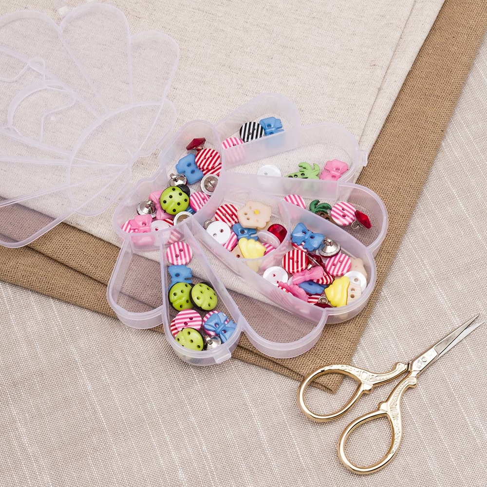 Контейнер произведен из прозрачного пластика, что обеспечивает мгновенный обзор содержимого. Милый дизайн в виде ракушки не оставит равнодушным ни одного любителя рукоделия, добавляя нотку игривости и очарования в процесс творчества. Благодаря компактным размерам, органайзер легко помещается в сумку или рюкзак, экономя пространство и обеспечивая порядок в ваших вещах.