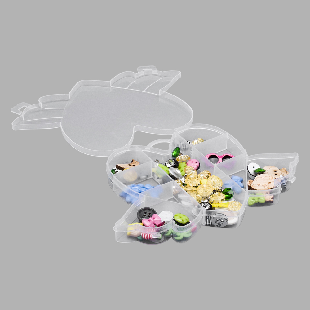 Контейнер произведен из прозрачного пластика, что обеспечивает мгновенный обзор содержимого. Милый дизайн в виде сердца с крыльями не оставит равнодушным ни одного любителя рукоделия, добавляя нотку игривости и очарования в процесс творчества. Благодаря компактным размерам, органайзер легко помещается в сумку или рюкзак, экономя пространство и обеспечивая порядок в ваших вещах.