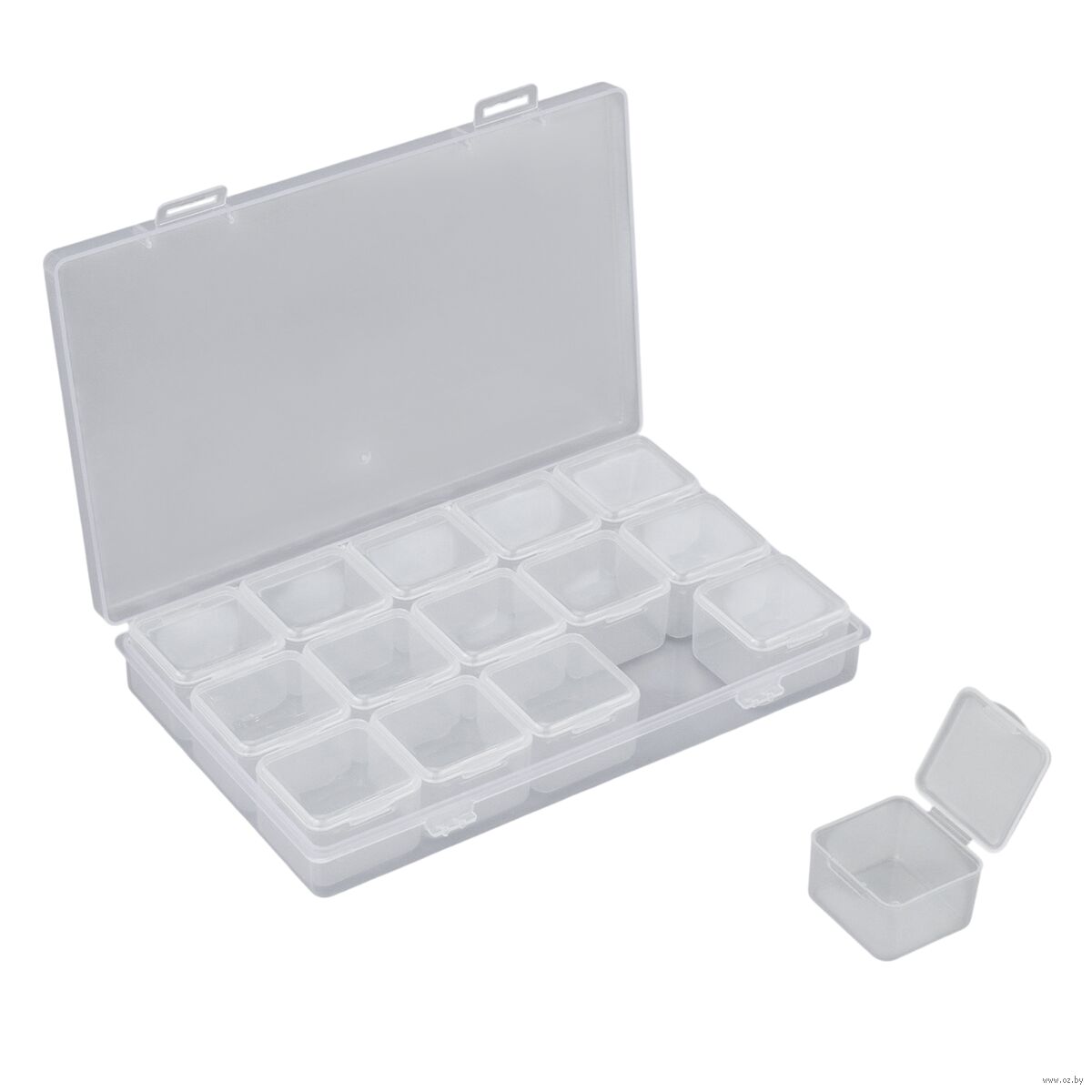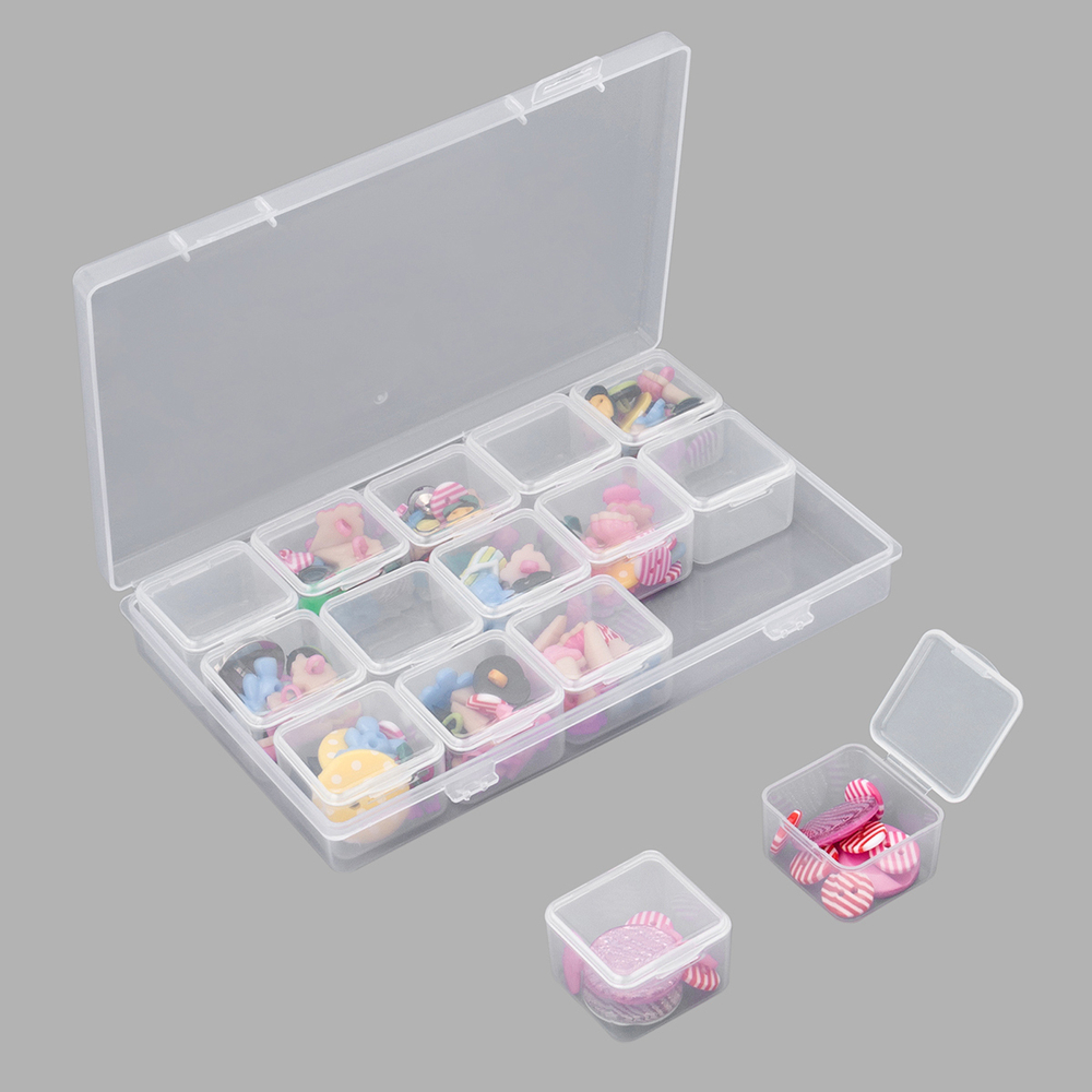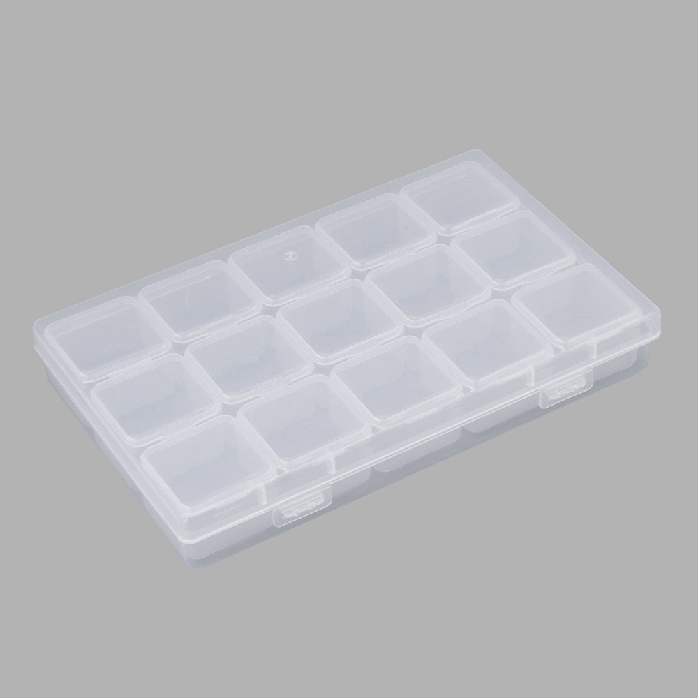Практичная конструкция включает в себя 15 боксов с плотно закрывающимися защелками. Боксы надежно защищают содержимое от пыли, влаги и рассыпания, сохраняя его в идеальном состоянии.