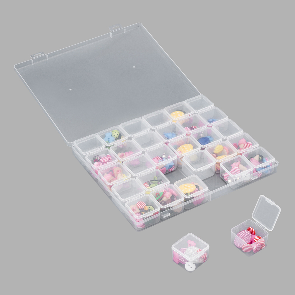 Практичная конструкция включает в себя 30 боксов с плотно закрывающимися защелками. Боксы надежно защищают содержимое от пыли, влаги и рассыпания, сохраняя его в идеальном состоянии.