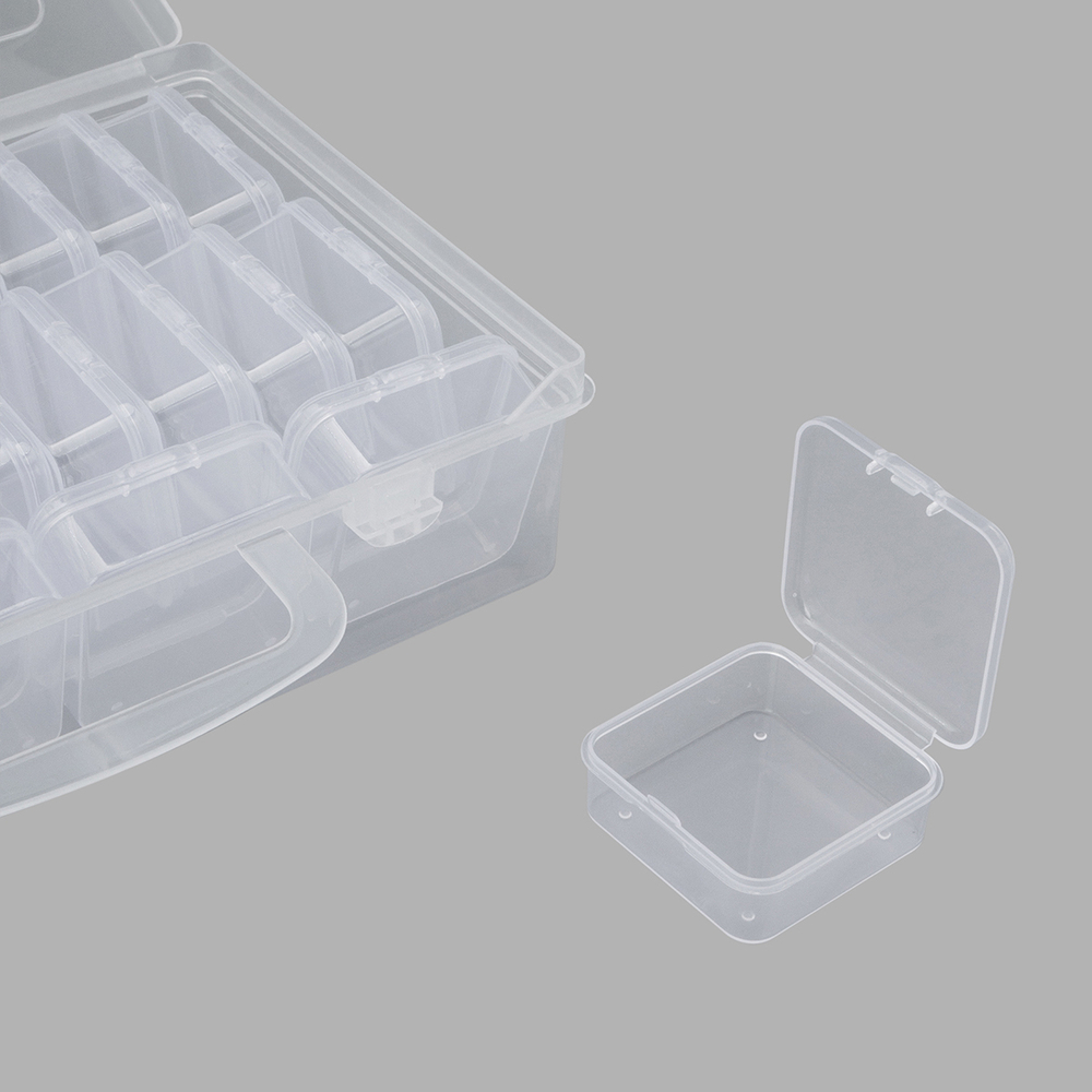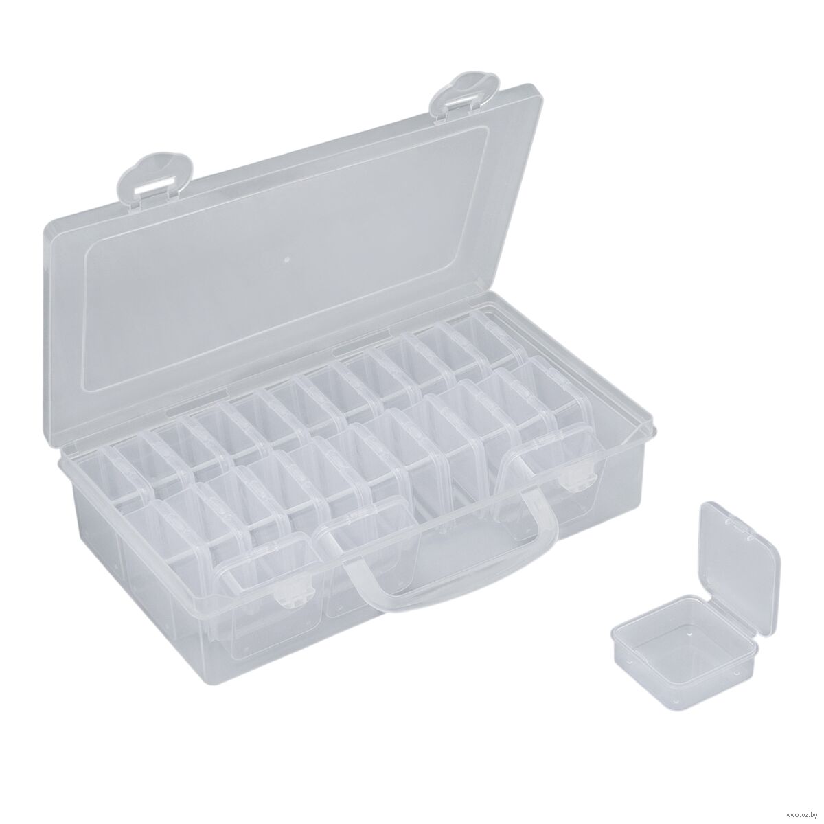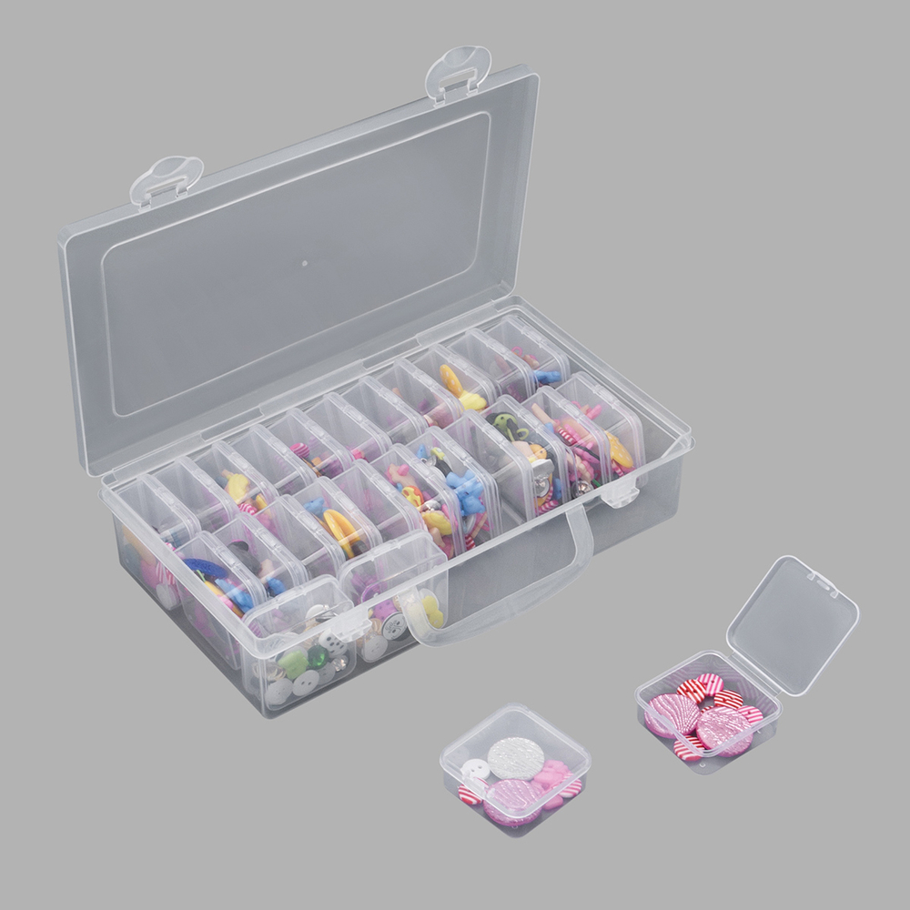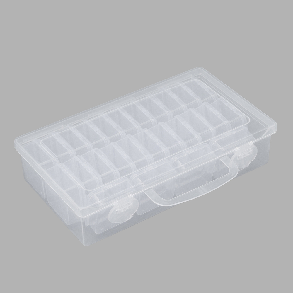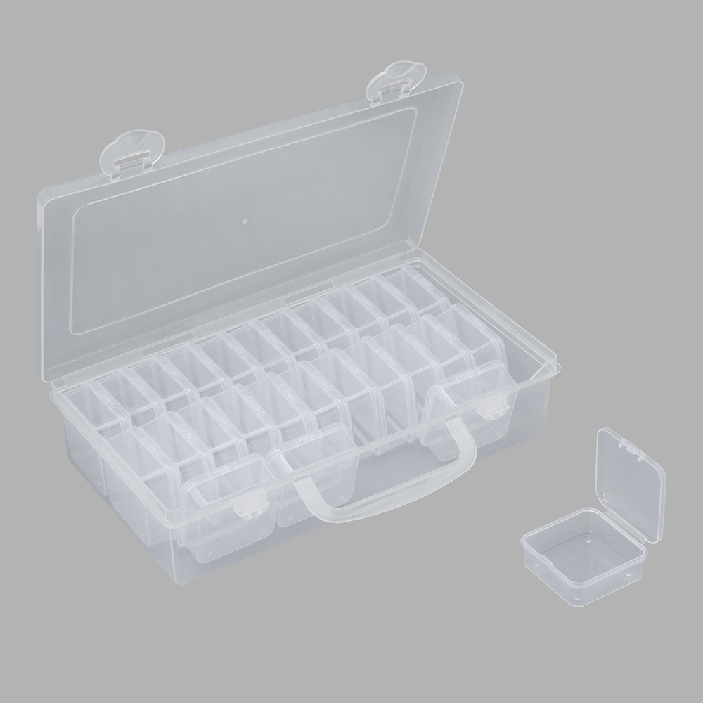 Практичная конструкция включает в себя 26 боксов с плотно закрывающимися защелками. Боксы надежно защищают содержимое от пыли, влаги и рассыпания, сохраняя его в идеальном состоянии.