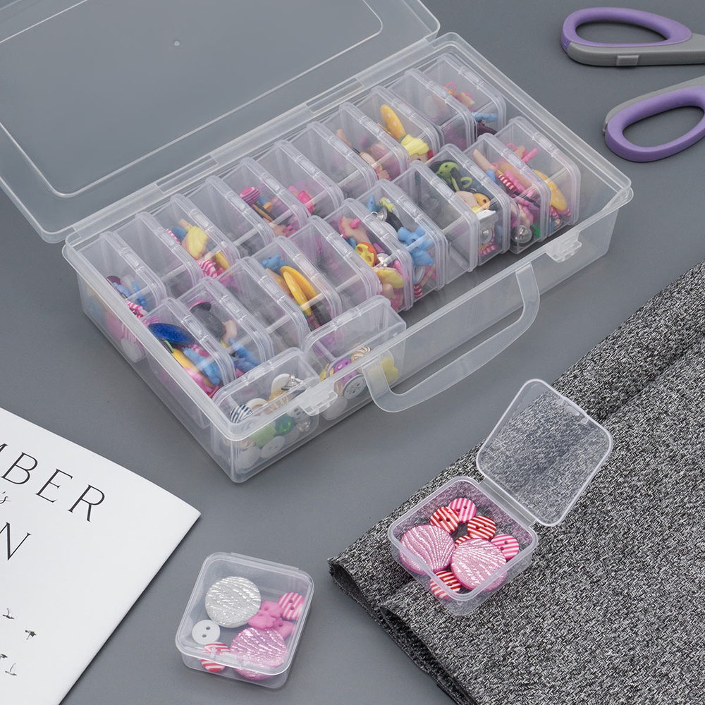 Органайзер для мелочей с боксами идеально подходит для хранения разнообразных материалов и предметов: бисера, бусин, пуговиц, цветного песка, лекарств, булавок, иголок и других мелких аксессуаров.