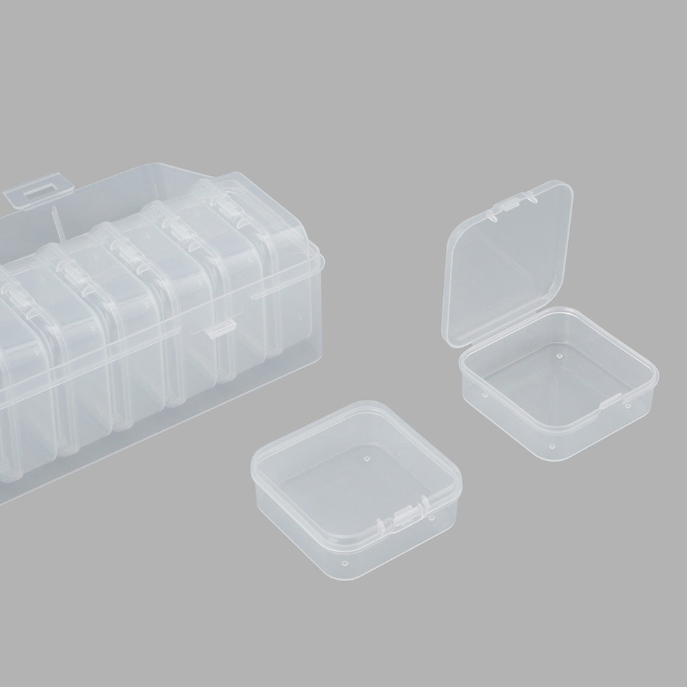 Практичная конструкция включает в себя 12 боксов с плотно закрывающимися защелками. Боксы надежно защищают содержимое от пыли, влаги и рассыпания, сохраняя его в идеальном состоянии.