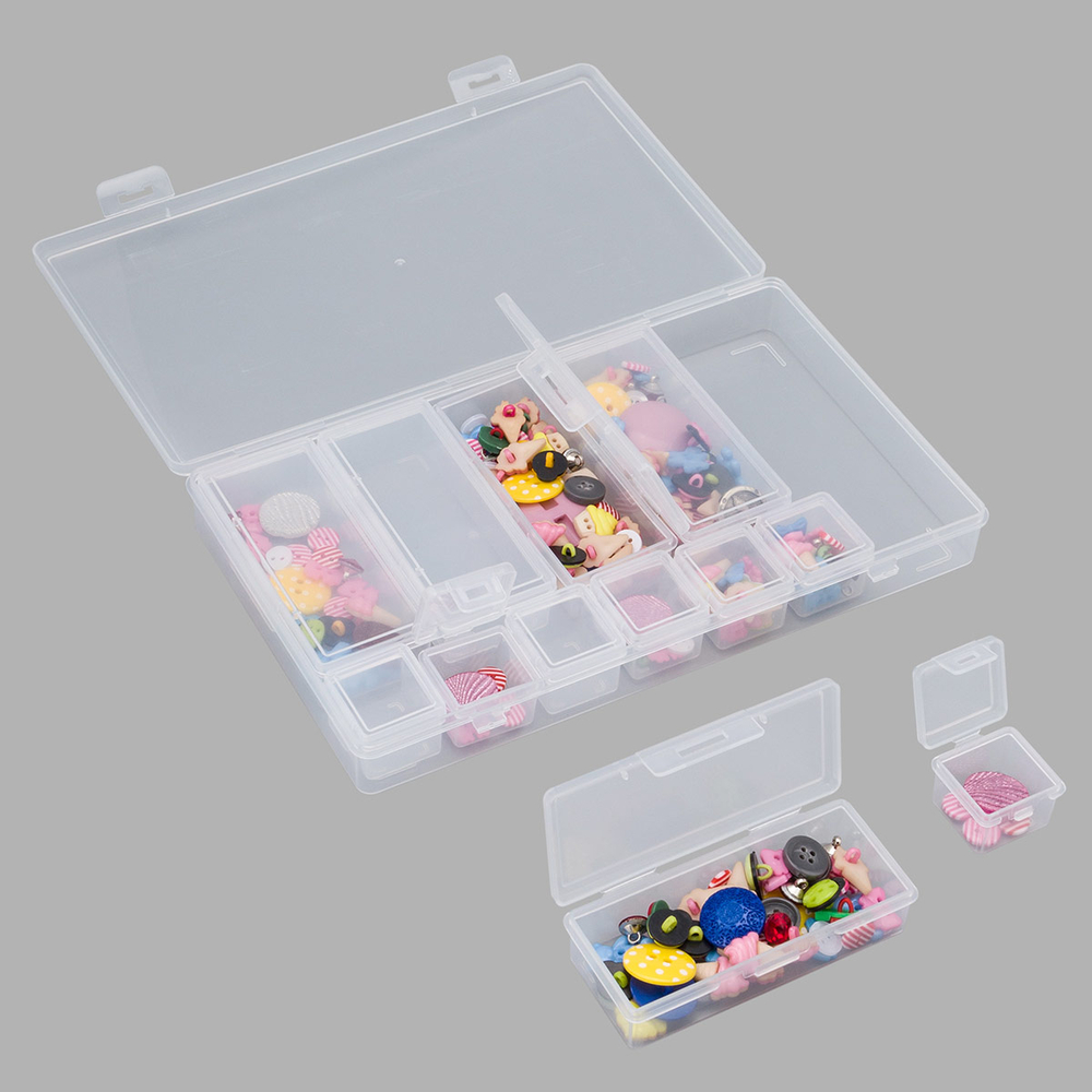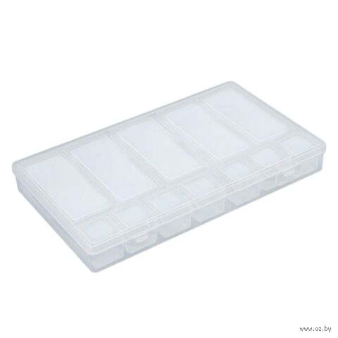 Практичная конструкция включает в себя 12 боксов с плотно закрывающимися защелками. Боксы надежно защищают содержимое от пыли, влаги и рассыпания, сохраняя его в идеальном состоянии.