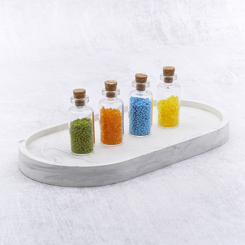 Маленькие стеклянные декоративные баночки с пробкой – универсальный материал для творчества и декора. Их можно использовать по-разному: создавать миниатюрные композиции для кукольных домиков, оригинальные елочные игрушки или применять в качестве изящных емкостей для хранения мелких предметов, таких как бисер, стразы, пайетки, бусины или фурнитура для украшений.
