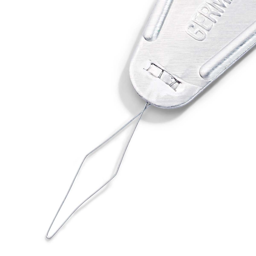 Нитевдеватель из алюминия и пружинной стали незаменимый инструмент для швейных работ. Благодаря своей тонкой петле из гибкой стальной пружинной проволоки он особенно подходит для тонких ниток и швейных игл с небольшим ушком.