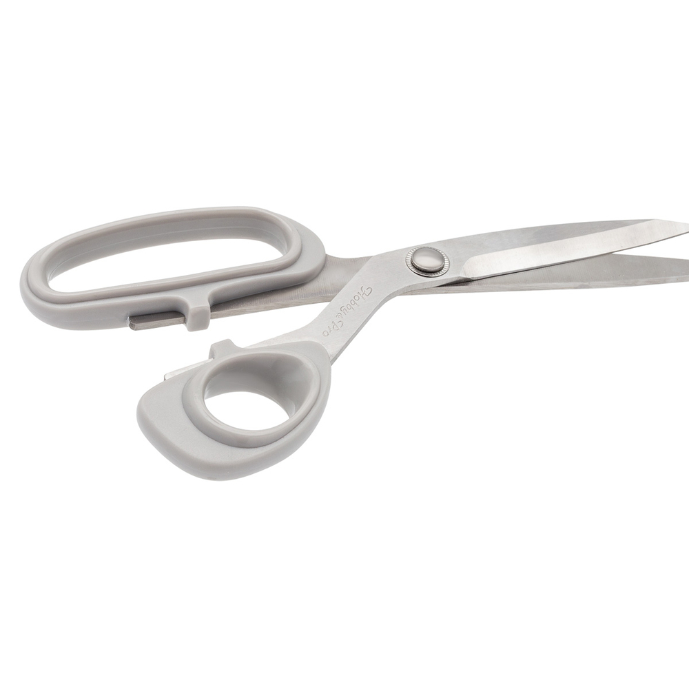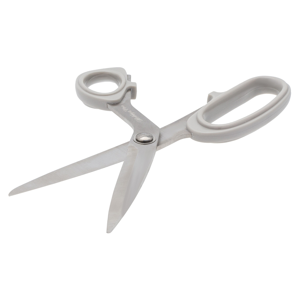 Острые лезвия из стали позволяют легко резать материалы, не оставляя загибов по краям. Конструкция ножниц позволяет работать с тканью, не поднимая её над столом. Удобные пластиковые ручки обеспечивают комфорт даже при длительном использовании.