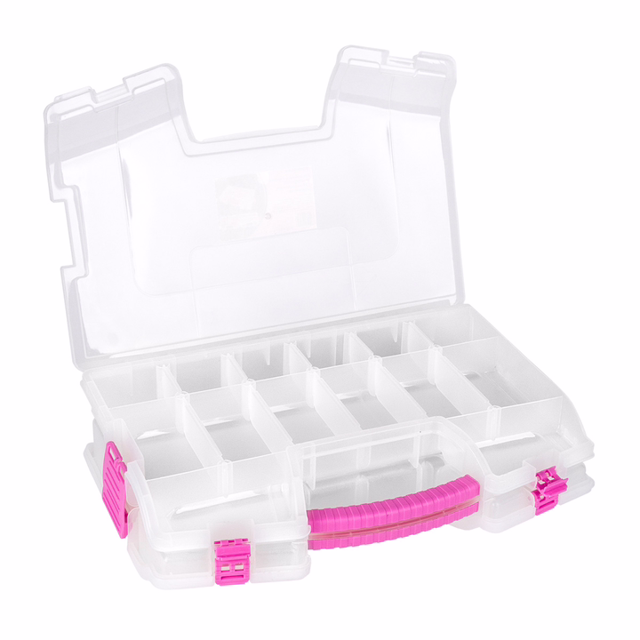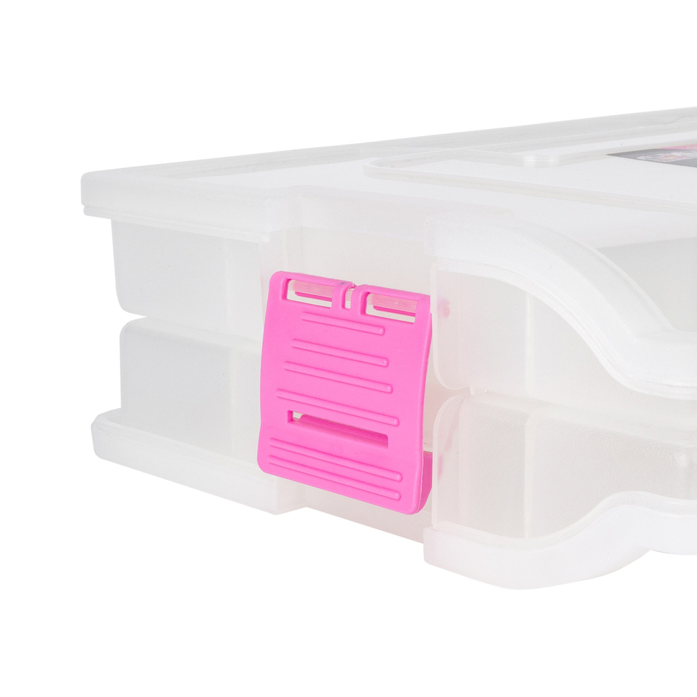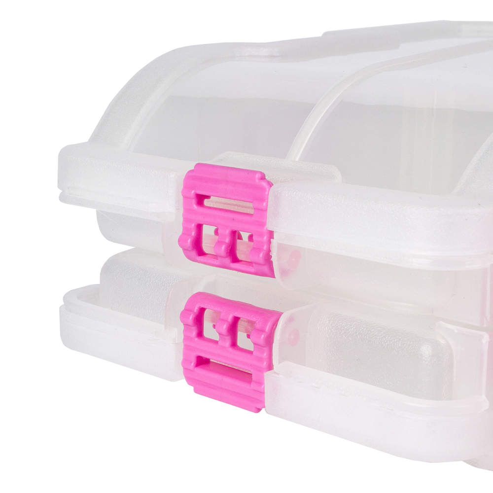 Прочный пластик, из которого изготовлен контейнер, гарантирует его долговечность и устойчивость к повреждениям. Пластиковый контейнер с крышкой надежно защелкивается, поэтому при транспортировке ничего не выпадет. Органайзер для мелочей легко поместится в сумке или рюкзаке, позволяя всегда иметь необходимые материалы под рукой.