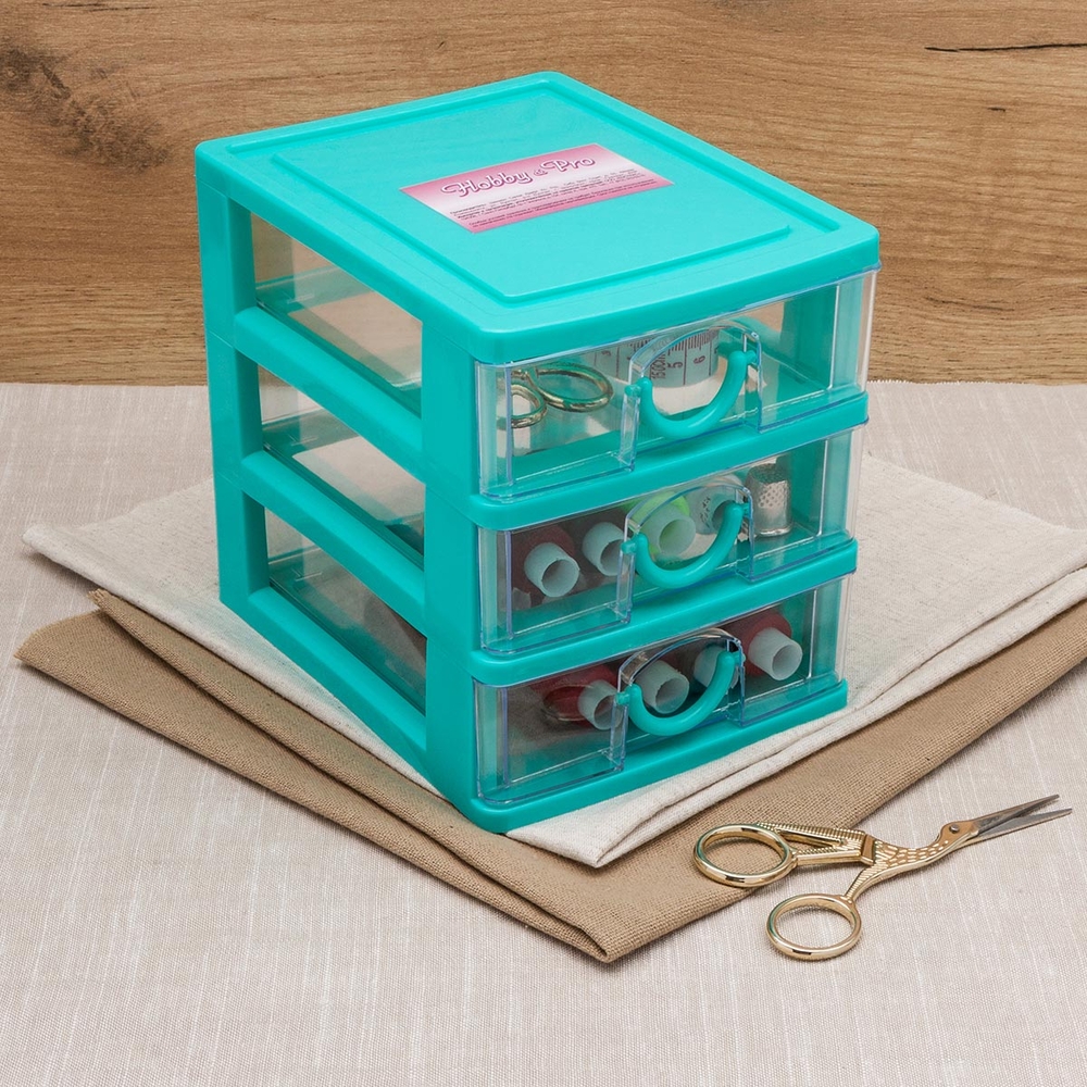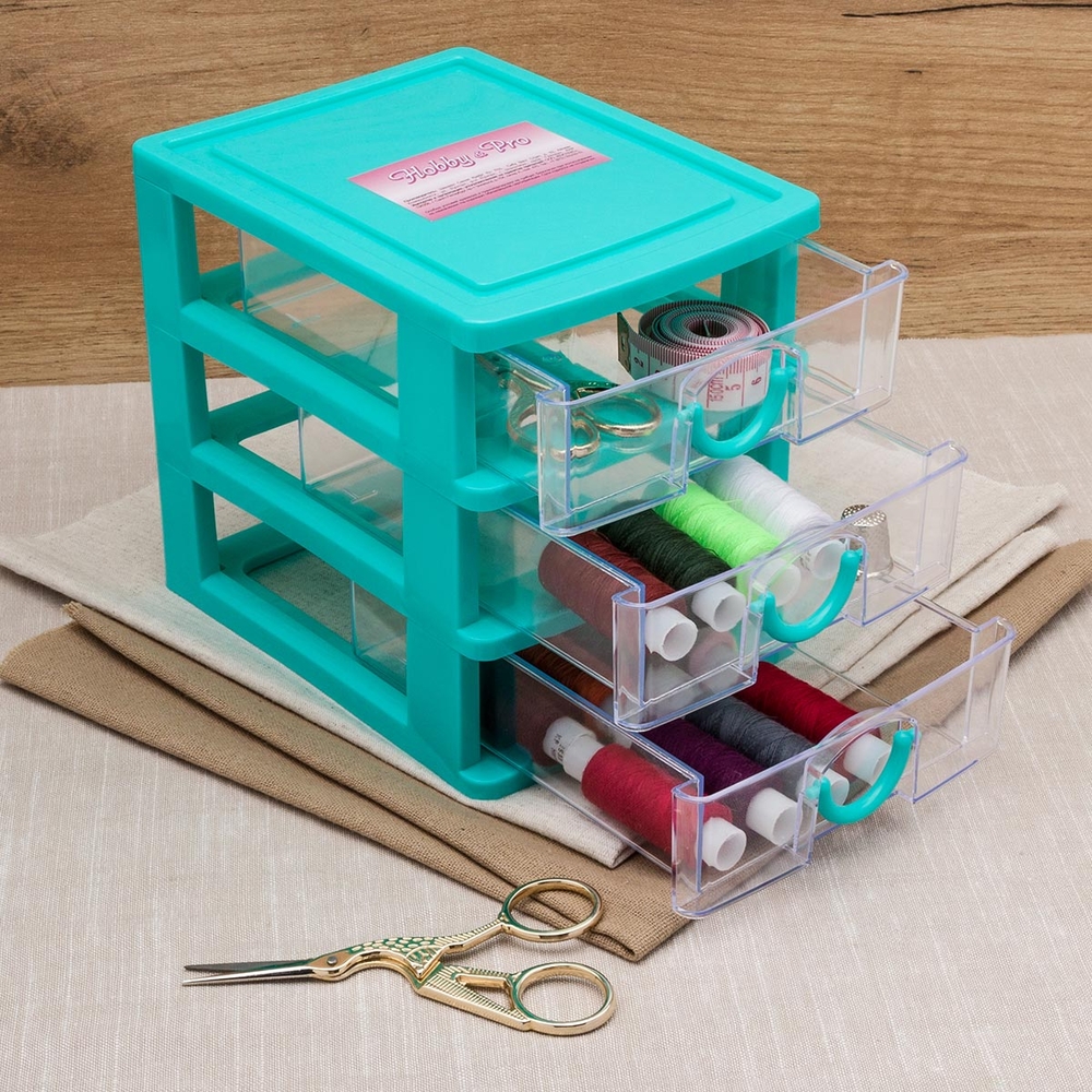 Пластиковый контейнер для хранения из 3 ярусов – верный помощник в организации пространства и поддержании порядка. Он с легкостью вместит в себя как инструменты для рукоделия, так и множество других необходимых вещей. Нитки, иглы, пуговицы, булавки, ножницы, канцелярские товары, бижутерия и прочие бытовые принадлежности будут аккуратно сложены, упорядочены и всегда под рукой.