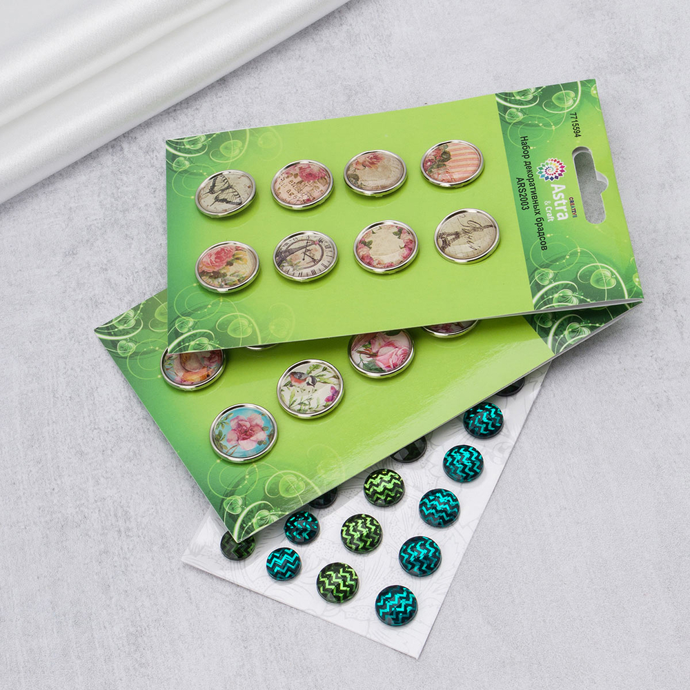 Набор для творчества и декора – полезный комплект для создания уникальных поделок и декорирования предметов интерьера. Набор включает в себя декоративные элементы для воплощения творческих идей: брадсы для творчества, а также стразы клеевые.
