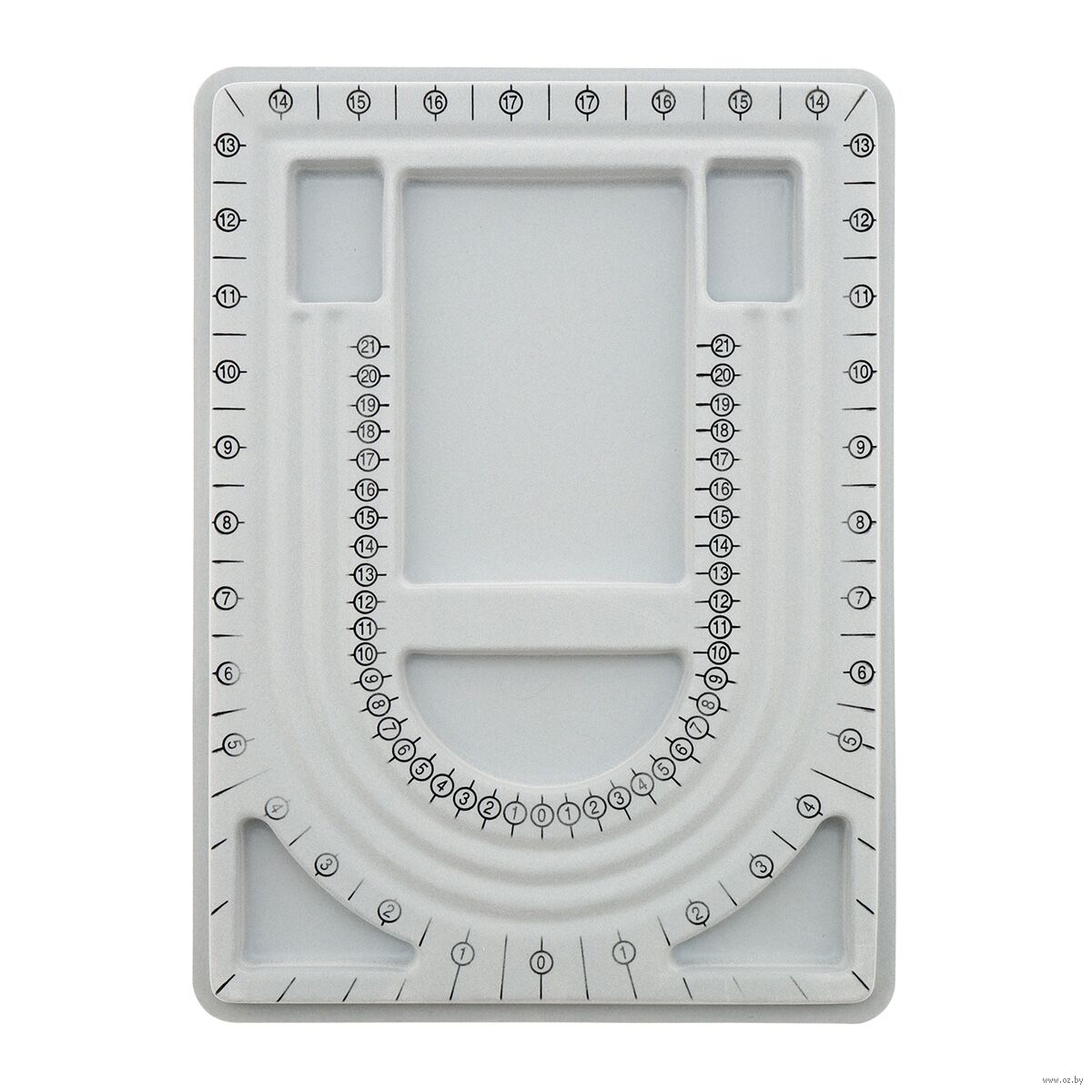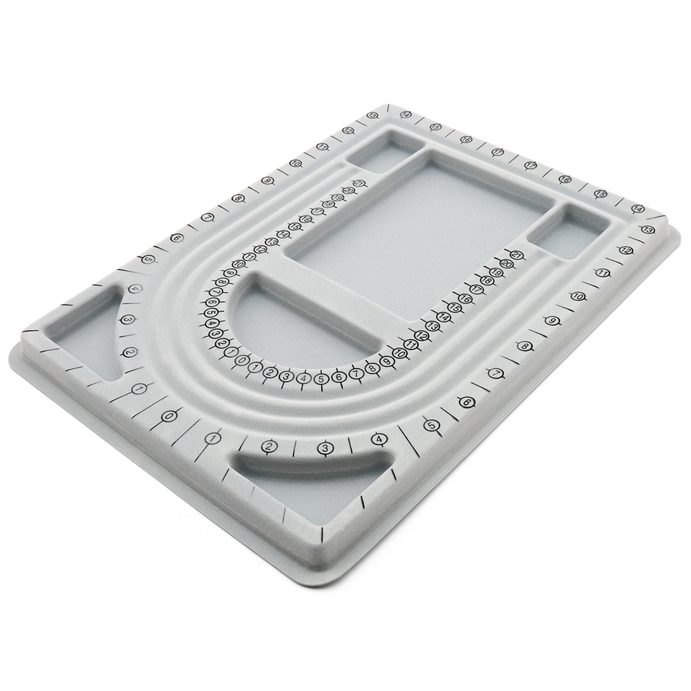 На планшете размещена удобная измерительная шкала, которая позволяет точно и быстро отмерять необходимое количество бусин или бисера для конкретного участка вашего украшения. Это значительно сокращает время, затрачиваемое на сборку, и позволяет вам сосредоточиться на творческом процессе.