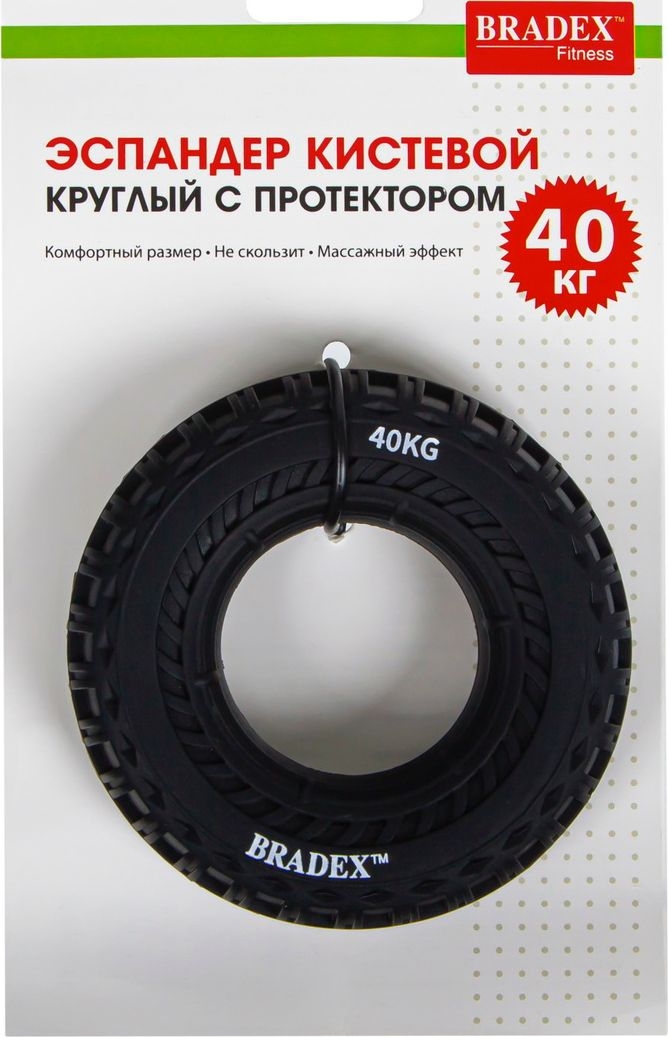 Кистевой эспандер– кольцо Bradex SF 0569 с нагрузкой 40 кг. Предназначен для тренировки и восстановления крепкого хвата, развития мышц пальцев, кисти, запястья, предплечья, а также бицепсов и трицепсов. Жесткость материала определяет соответствующую нагрузку: начинать следует с эспандера с минимальной нагрузкой и со временем менять на более жесткий. Эспандер подходит для любого возраста, комфортно размещается в руке, не скользит во время упражнений.
