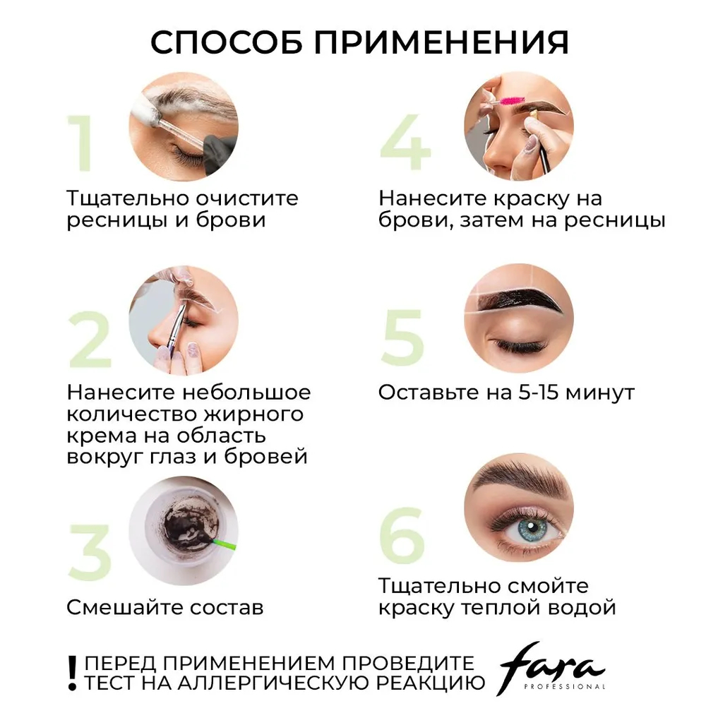 Стойкая крем-краска для бровей и ресниц Fara – профессионал в области окрашивания. Кремовая структура краски облегчает нанесение красящего состава и обеспечивает стойкий эффект без разводов и подтеков. Специальная формула без запахаобеспечивает максимальный комфорт во время окрашивания и щадящее действие на чувствительную кожу вокруг глаз. Отличный результат сохраняется в течение месяца.