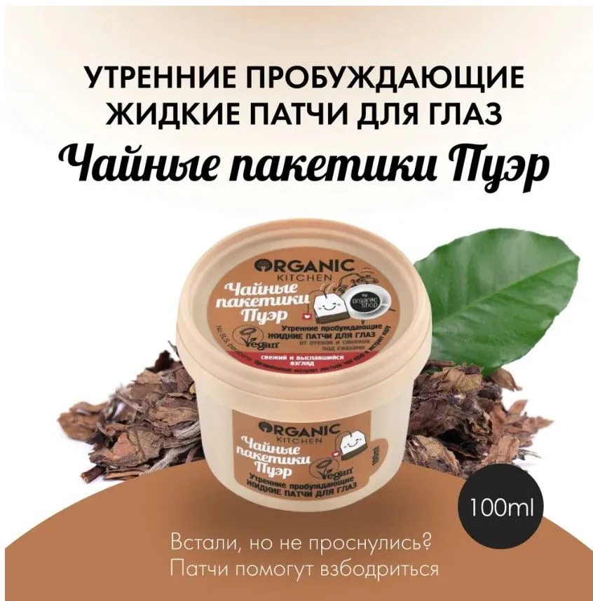 Если утром вы встали, но не проснулись, вам помогут взбодриться эти жидкие патчи для глаз! Органический экстракт листьев чая пуэр способствует уменьшению отеков, придает свежесть и защищает нежную кожу. Экстракт юдзу осветляет темные круги и придает сияние. А бодрящий аромат зарядит энергией и позитивом на весь день!