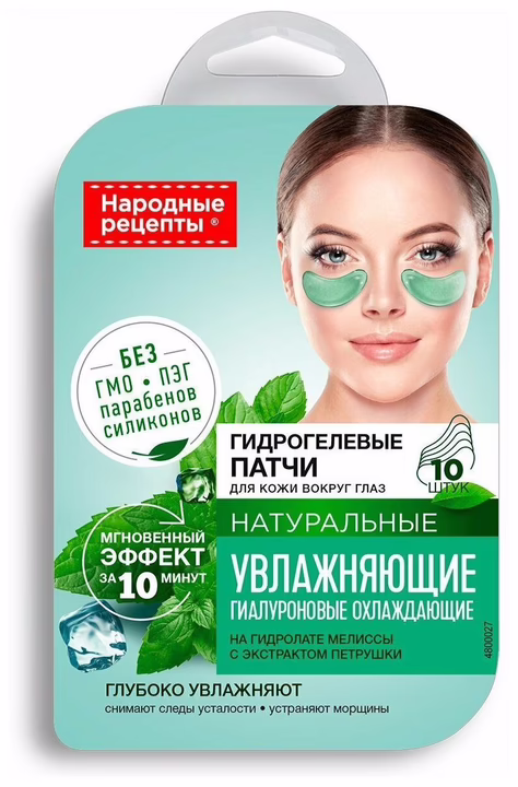 Натуральные гидрогелевые патчи Увлажняющие способны сотворить настоящее чудо всего за 10 минут применения. Они глубоко увлажняют нежную кожу век, снимают следы усталости, устраняют морщины, дарят сияние и свежесть. Гидролат мелиссы освежает, тонизирует и подтягивает кожу. Экстракт петрушки лучшее средство от отеков и темных кругов. Гиалуроновая кислота глубоко увлажняет, разглаживает морщины и омолаживает кожу. Чтобы получить приятный и полезный охлаждающий эффект храните патчи в холодильнике. Вы можете применять патчи утром или вечером в зависимости от потребностей Вашей кожи. Утром они быстро приведут в порядок кожу, устранят отеки, темные круги и морщинки. Вечером снимут напряжение, помогут расслабиться и отдохнуть.